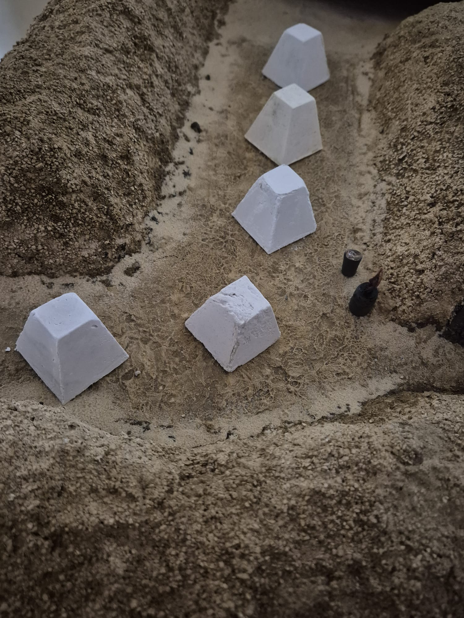 And since we are also speaking of displaying the infamous Siegfried Line I am preparing my own “Dragon Teeth” which when mixed with some other one commercially available, either in plaster, resin or styrene will form a formidable scenario of the real one Allies had to overcome.