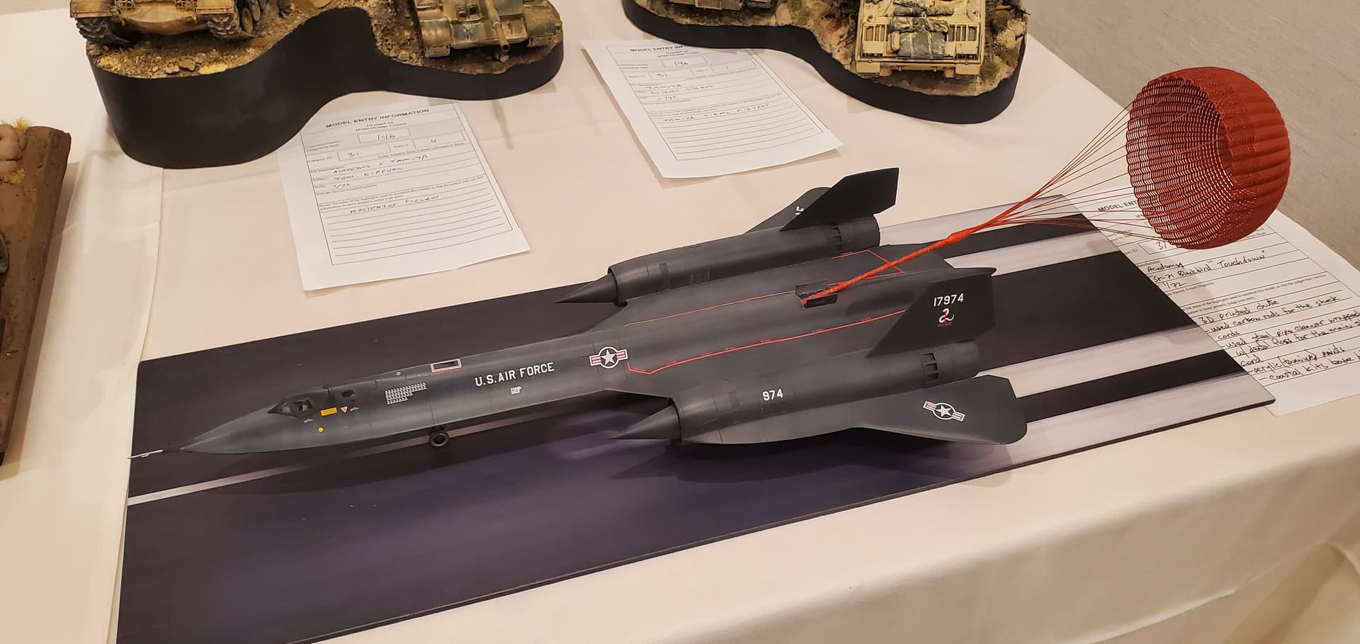 Thank you for posting the pictures. I really like the SR-71 with the deployed chute. Getting that to look good (chute) must have tried the patience!