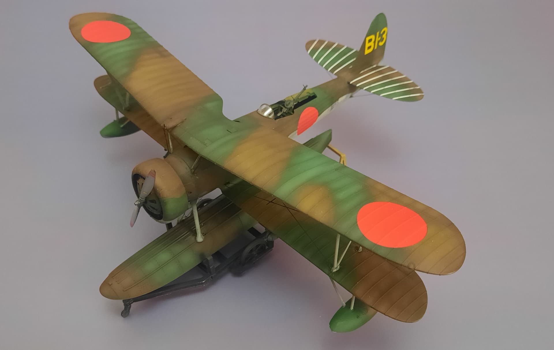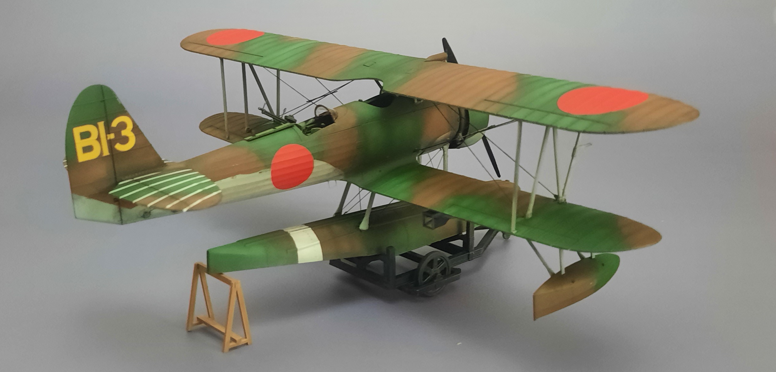 The Hasegawa E8N1 is a nicely detailed and engineered kit. I was skeptical of the lower wing mounting, but it ended up being more than robust enough for my clumsy rigging with the fishing line.