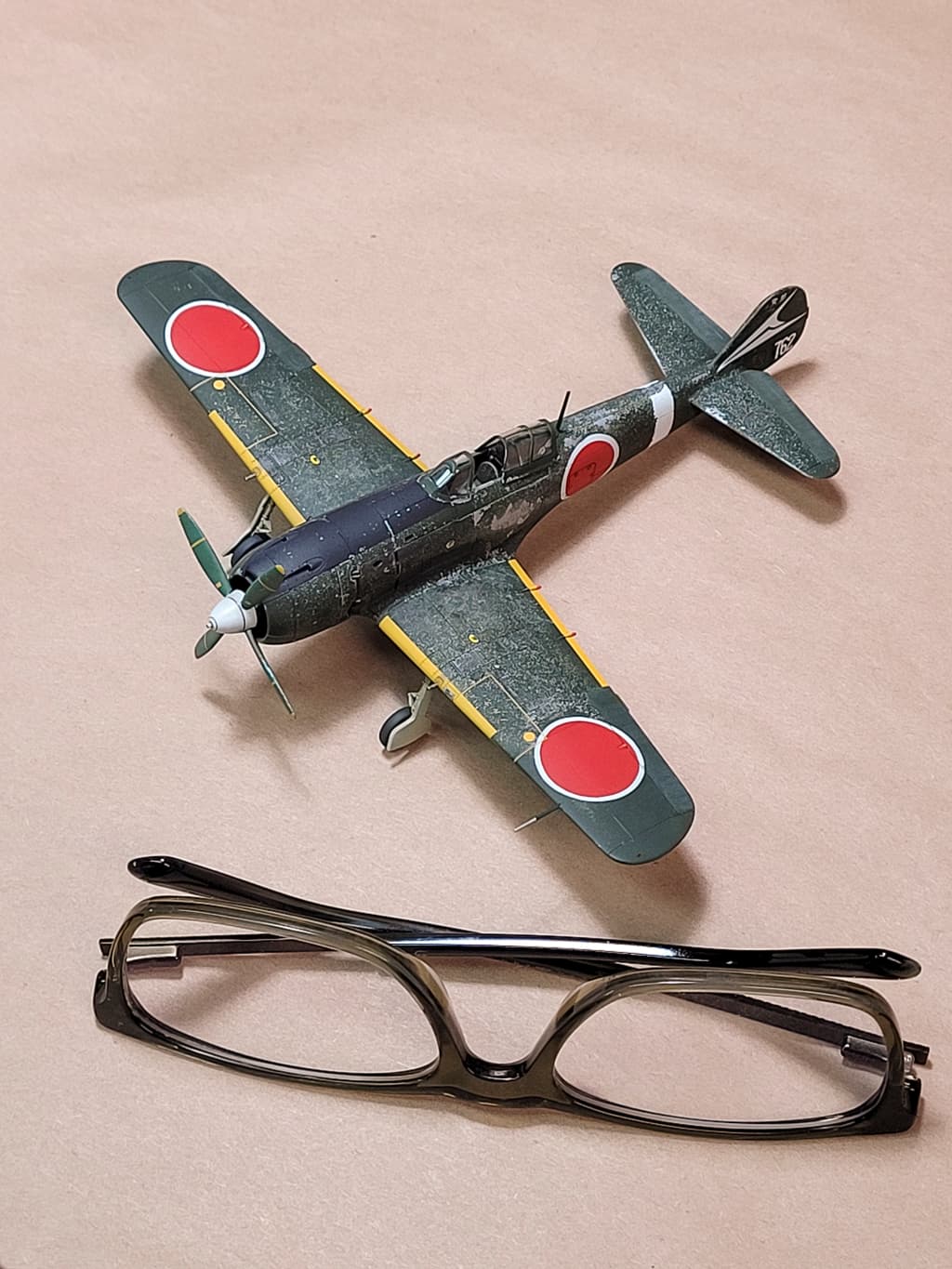 Still working on painting the Hayate folks. It’s not shown here but the painting is completely done now and it’s on to the final touches (landing gear, guns, drop tanks, antenna, you k now…). Forcing myself to not rush the last few steps… Tamiya vinyl tape worked very well for masking over those fairings on the trailing edge of the wings.
