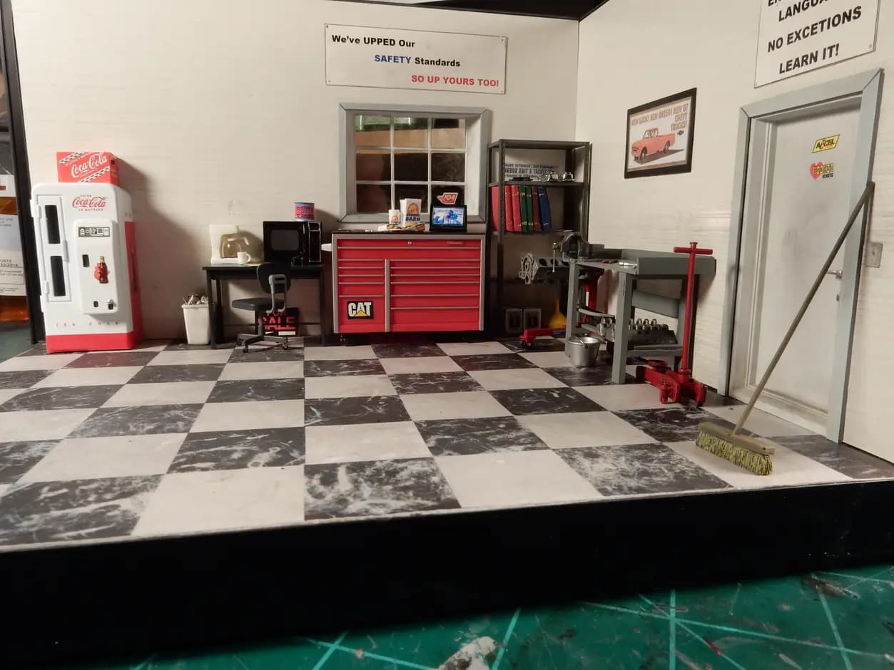 Love your dio! I know that the ‘tool box’ part of it is pretty old in the forums but I am just thinking that so many of those boxes you see have a couple of drawers that are about an inch from being closed all the way. Not nit-picking but just wanted to point it out and am thinking it would ramp up the realism a little.