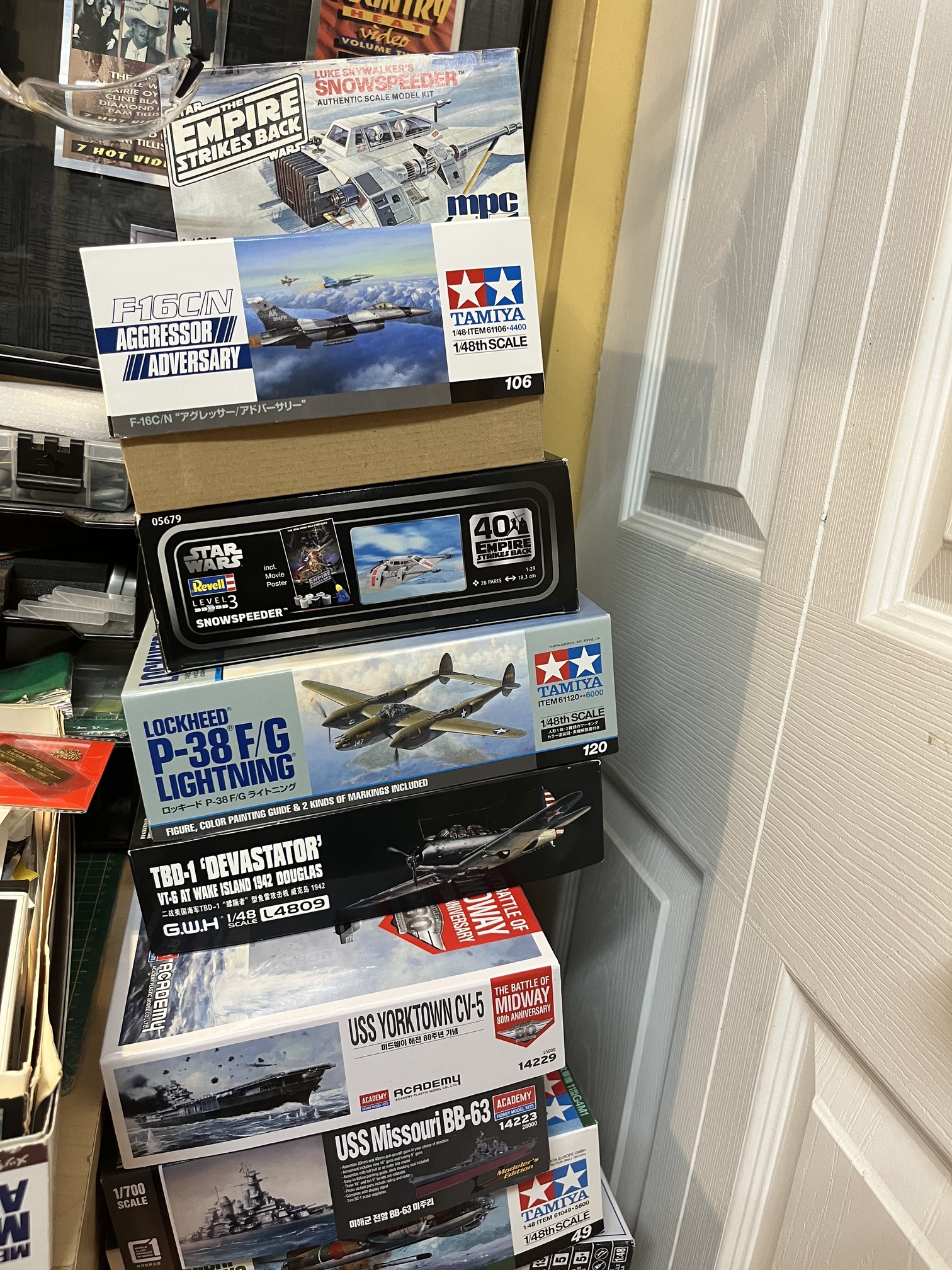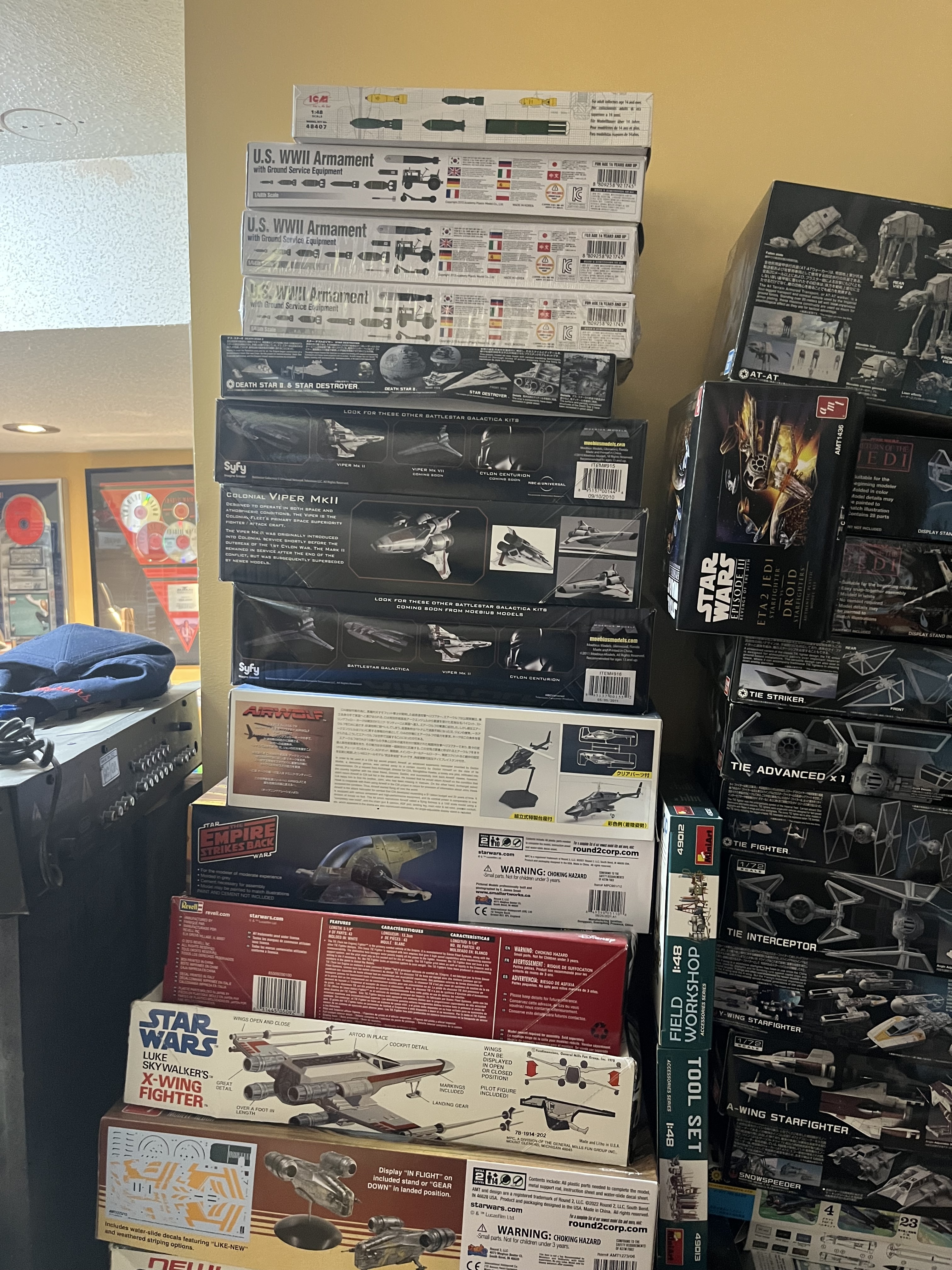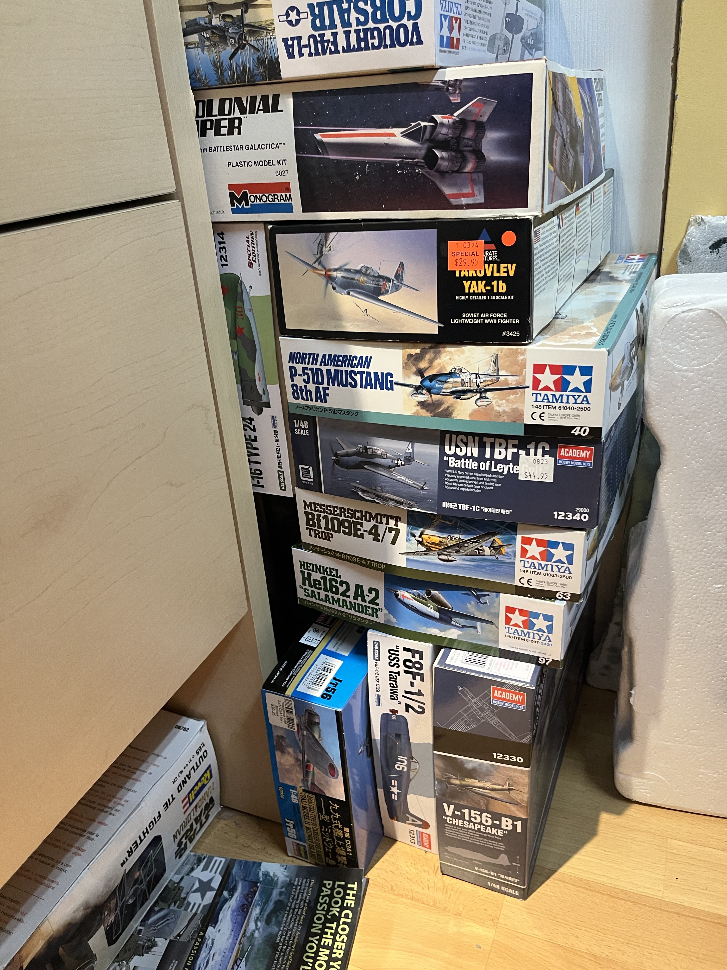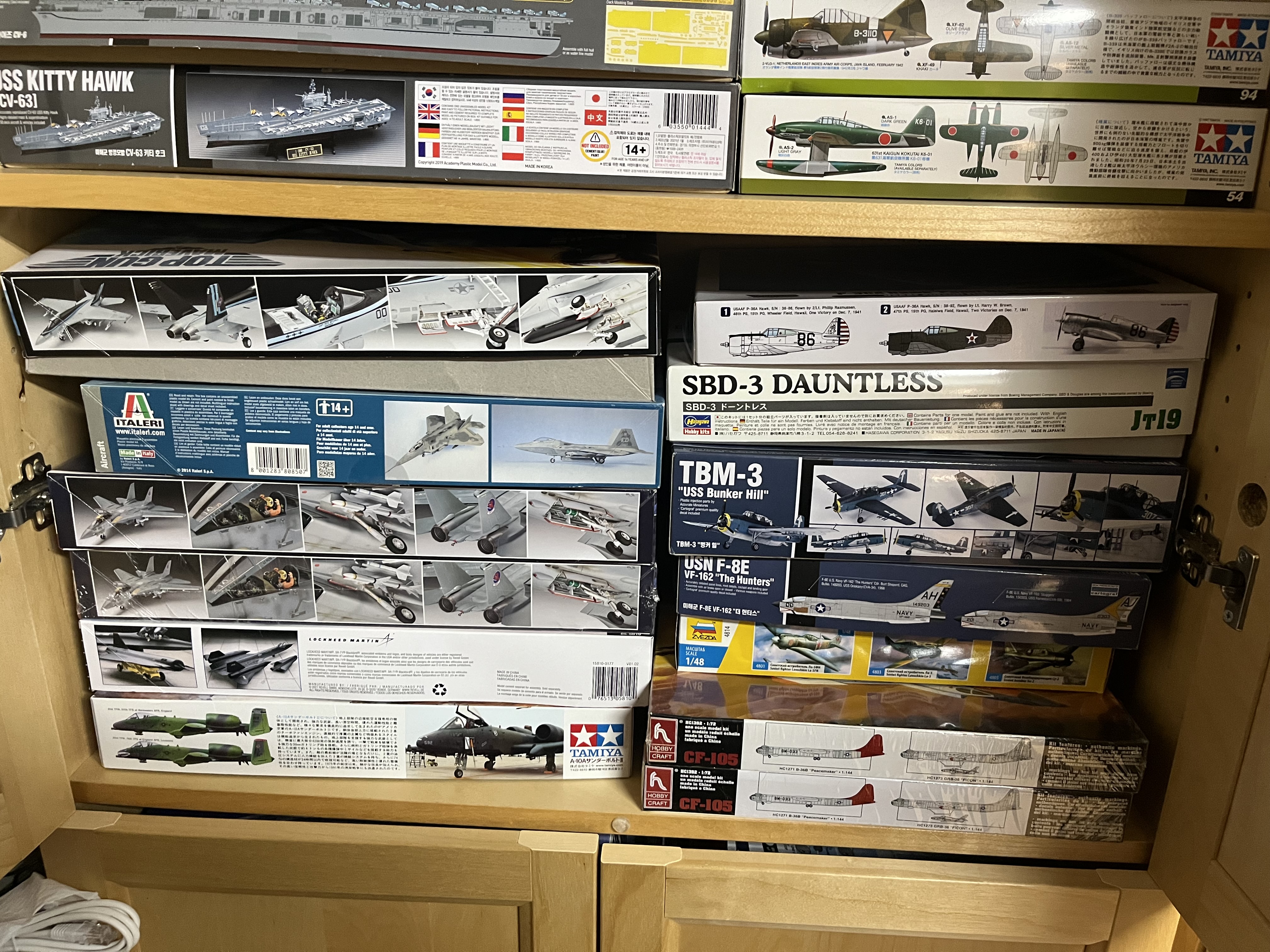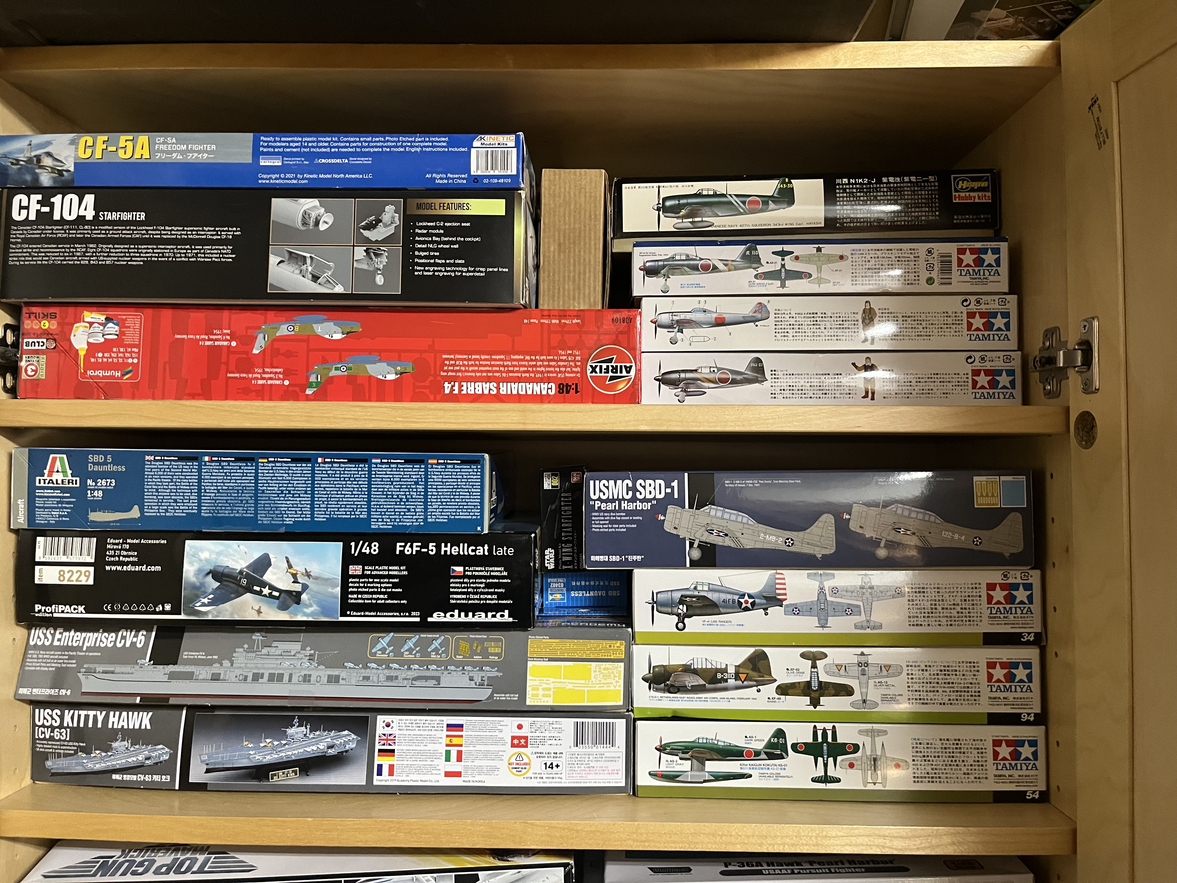 No picture of my stash but I am currently sitting on about 300 kits. Mostly aircraft with a few cars (I am currently working on a Mongram Indy car) and a couple armor kits.