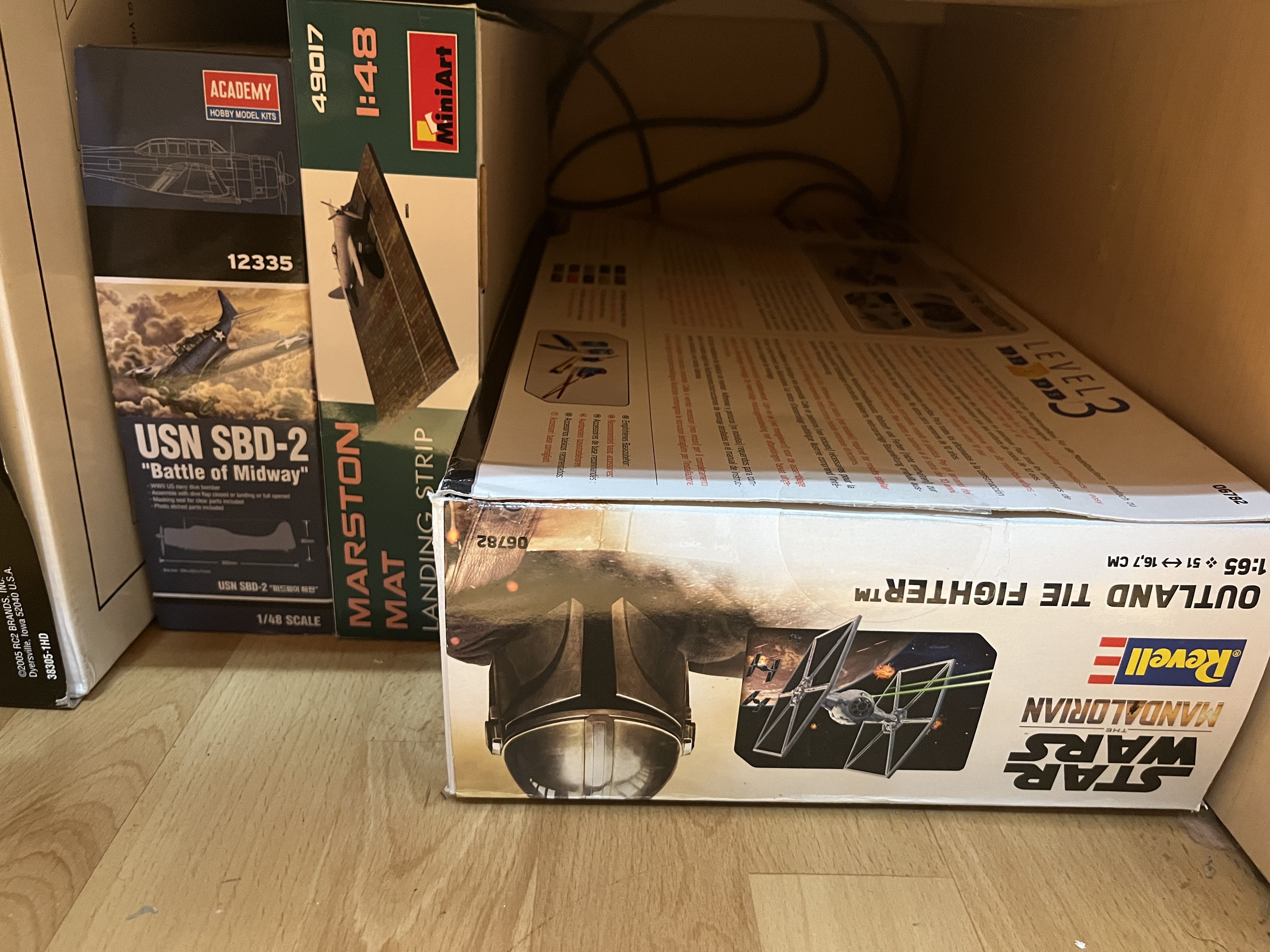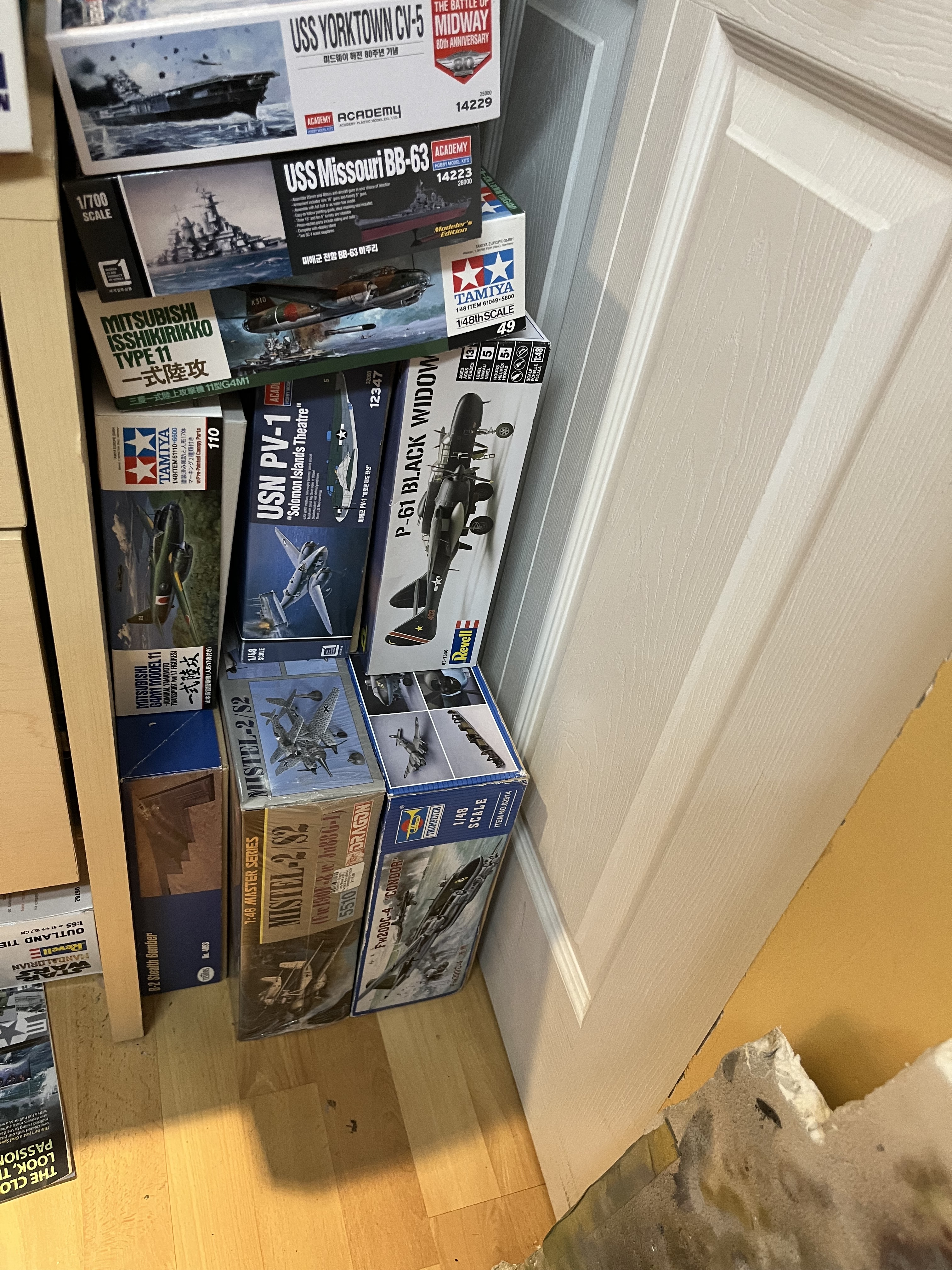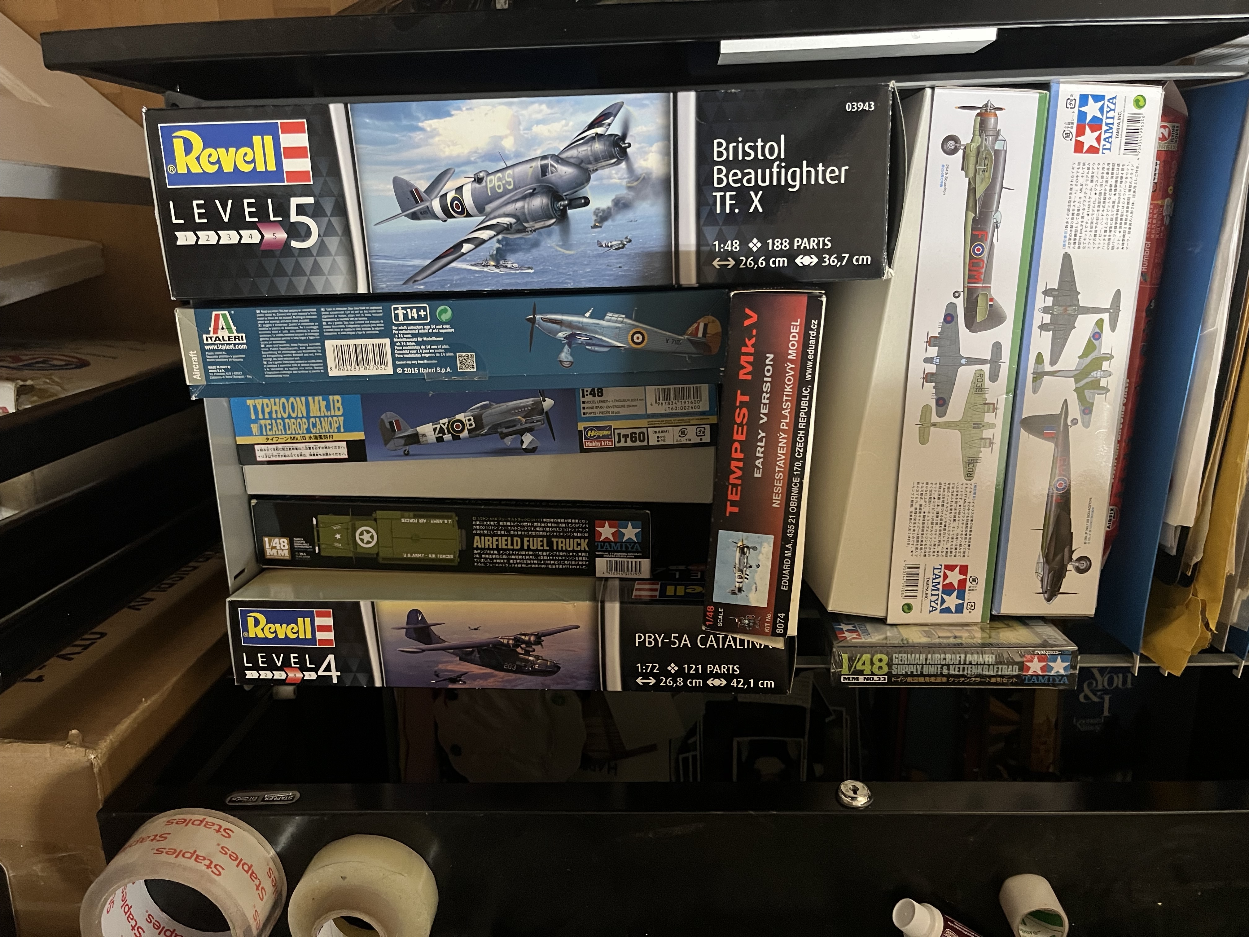 I know that I have more models in my stash than I have life left to build them. The problem is there are so many newer kits coming out that it is difficult not to get at least some of them. I guess that is part of the joy of modeling (the hunt and purchase). Kudos to you stikpusher, tempestjohnny, Montreals_finest and others as your stashes looks very well maintained/organized.