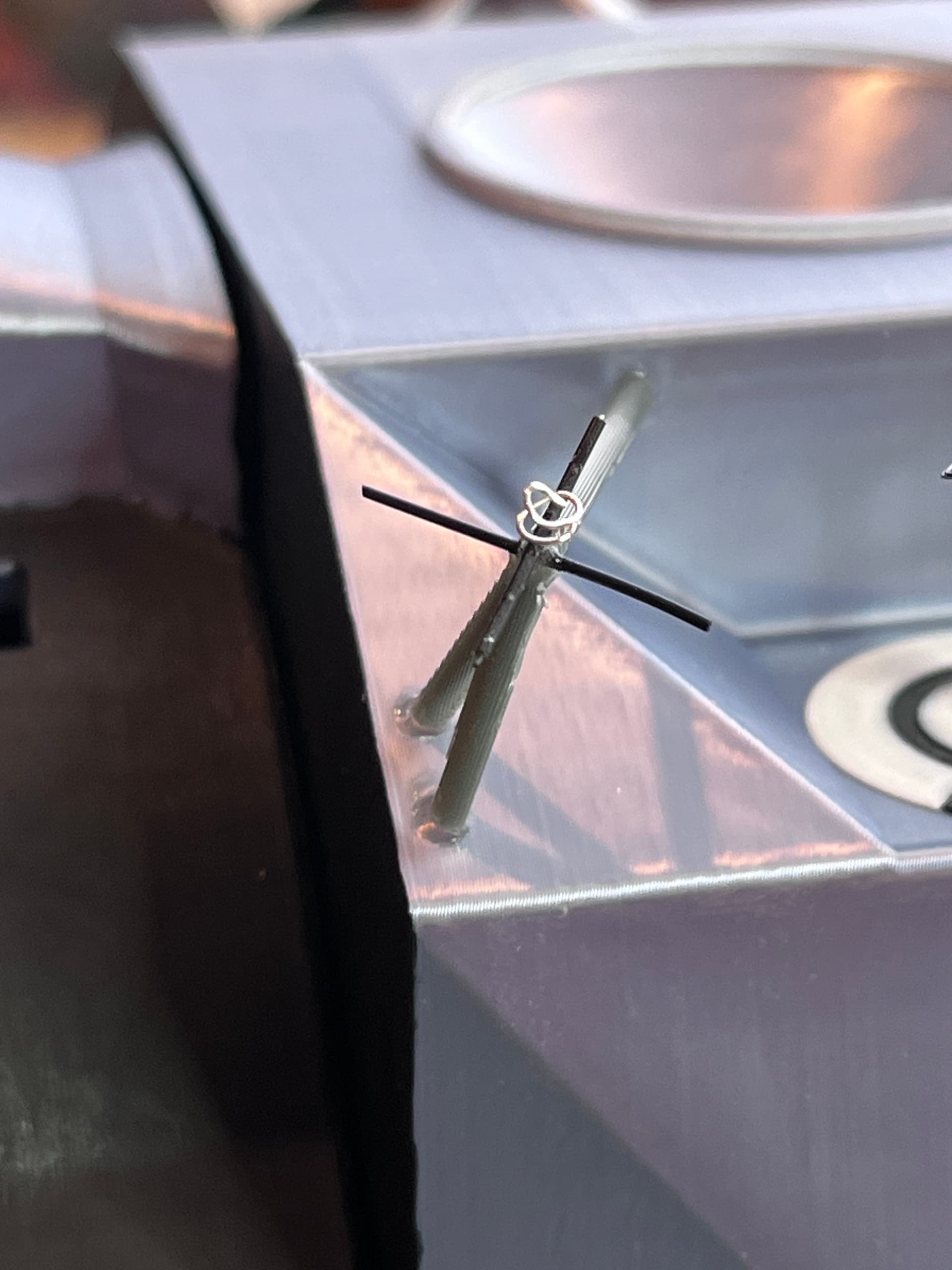 The other final detail was the ends of the VHF antennas (2). I used a really small black wire that I use for wire wrapping chips.