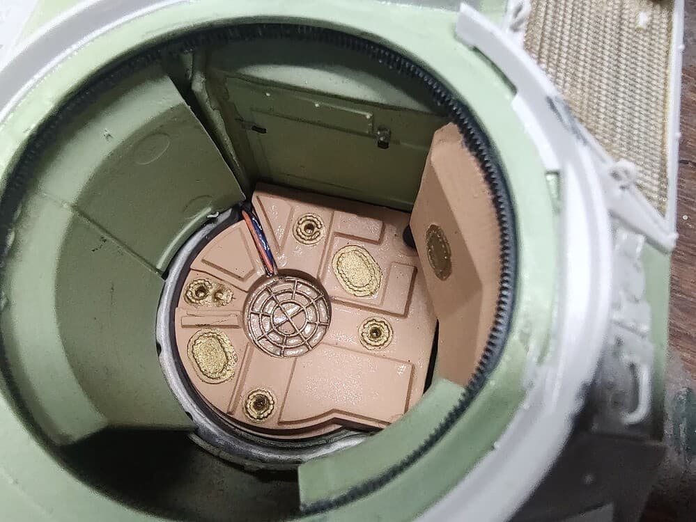 The area under and around the turret. I added the ring that transfers power and such to the turret base and wires going to it.