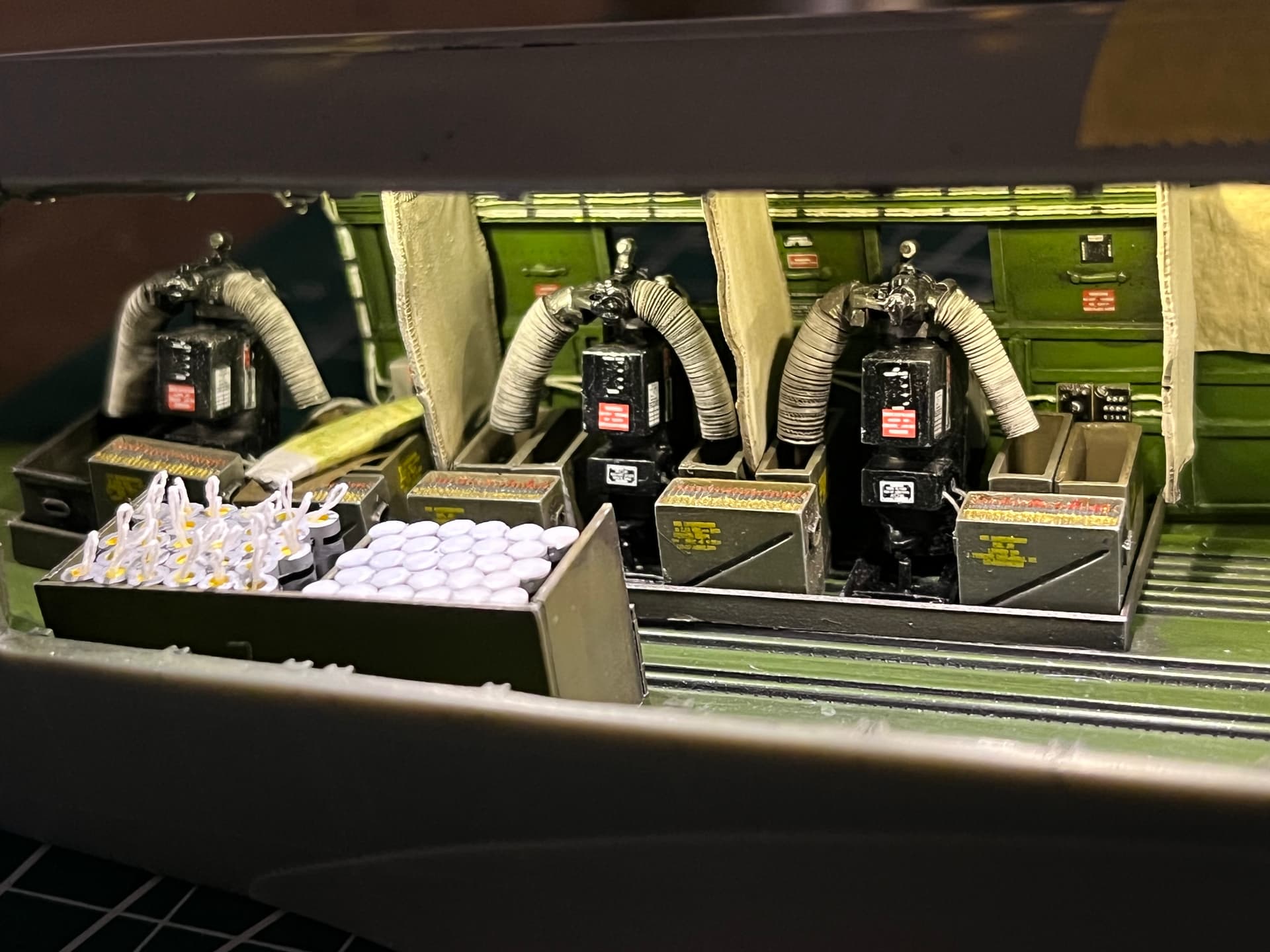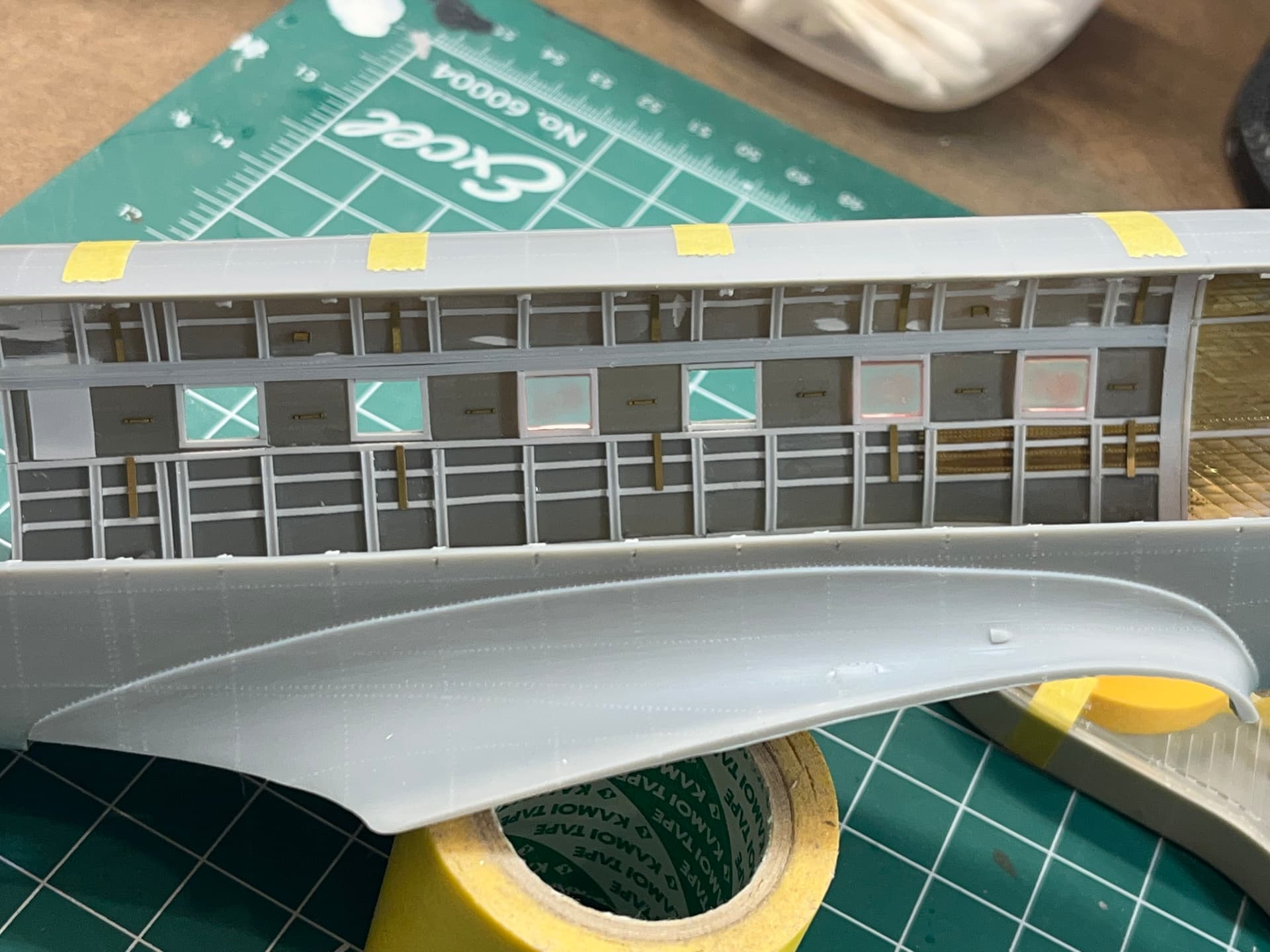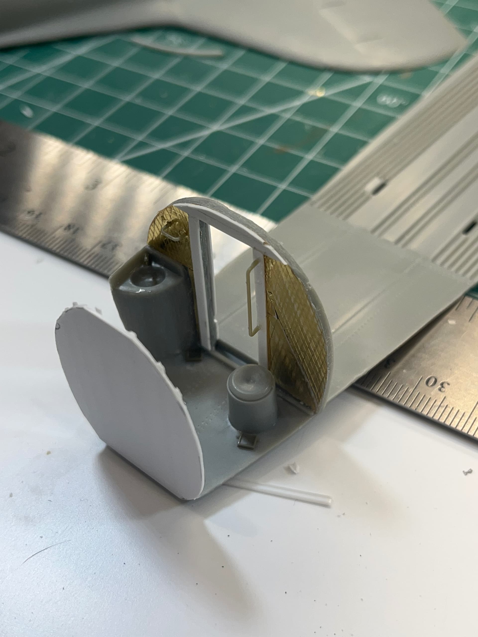 I added ribbing detail inside the entire interior, along with Red and White lights. A tremendous amount of scratch building, but worth it to see the look on his face.