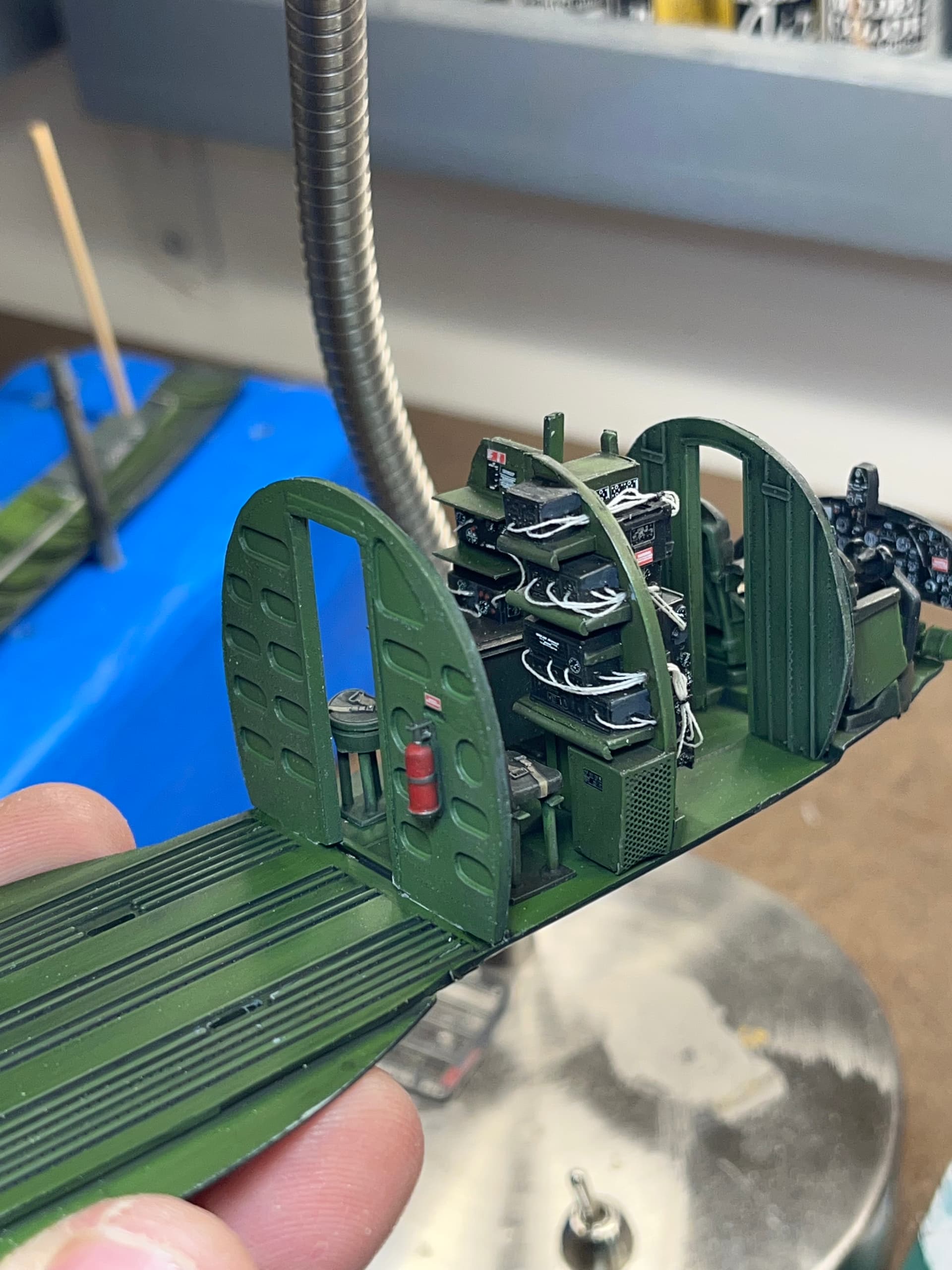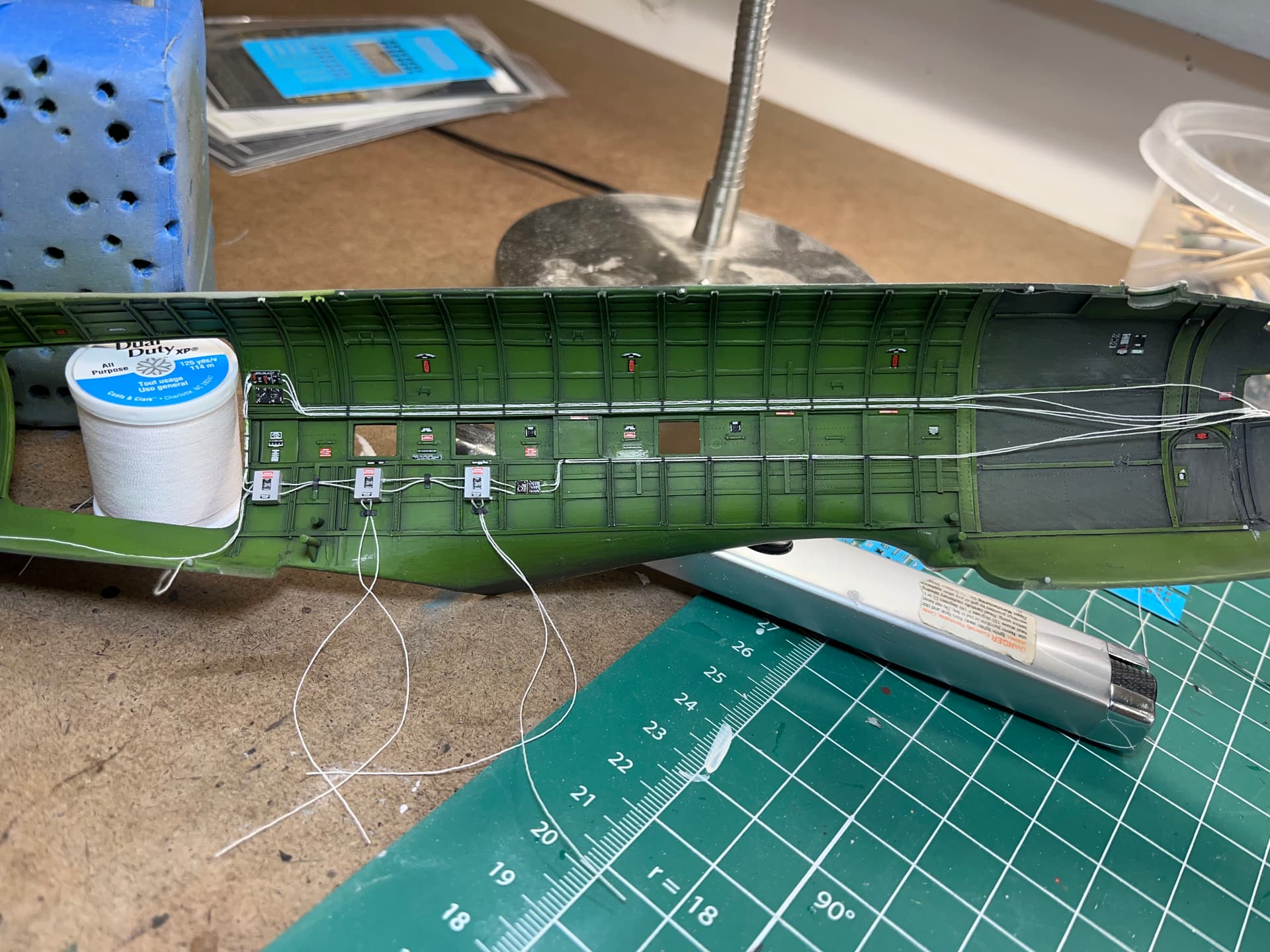 Wow, you knocked that one out of the park. I don’t think I’ve ever considered using something like white thread to replicate wiring inside an aircraft. I’m betting your friend loves this build.