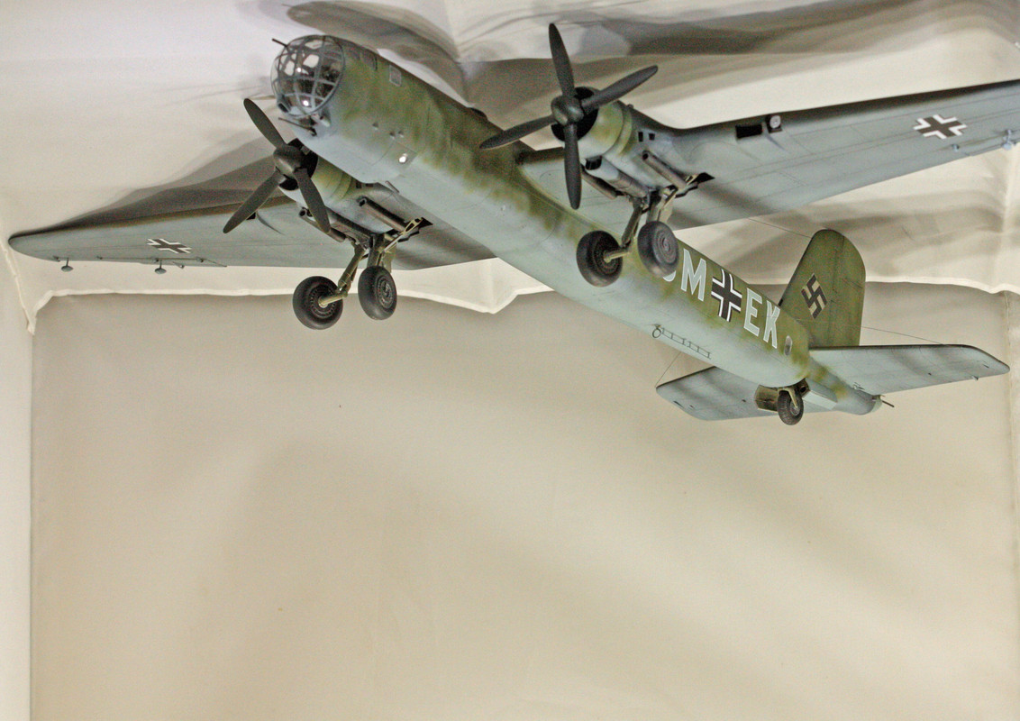 I think it was a difficult effort that was worth it just to have this bomber on display near my Allied heavies. I first got interested in this bomber just from a quick view of what appears to have been 177s attacking a department store in Stalingrad in the movie Enemy at the Gates. Later, there was a sequence involving a crashing 177 in the movie Allied. So, there is a bit of knowledge of the existence of this big bomber in the popular media, and it really is a good-looking warbird.