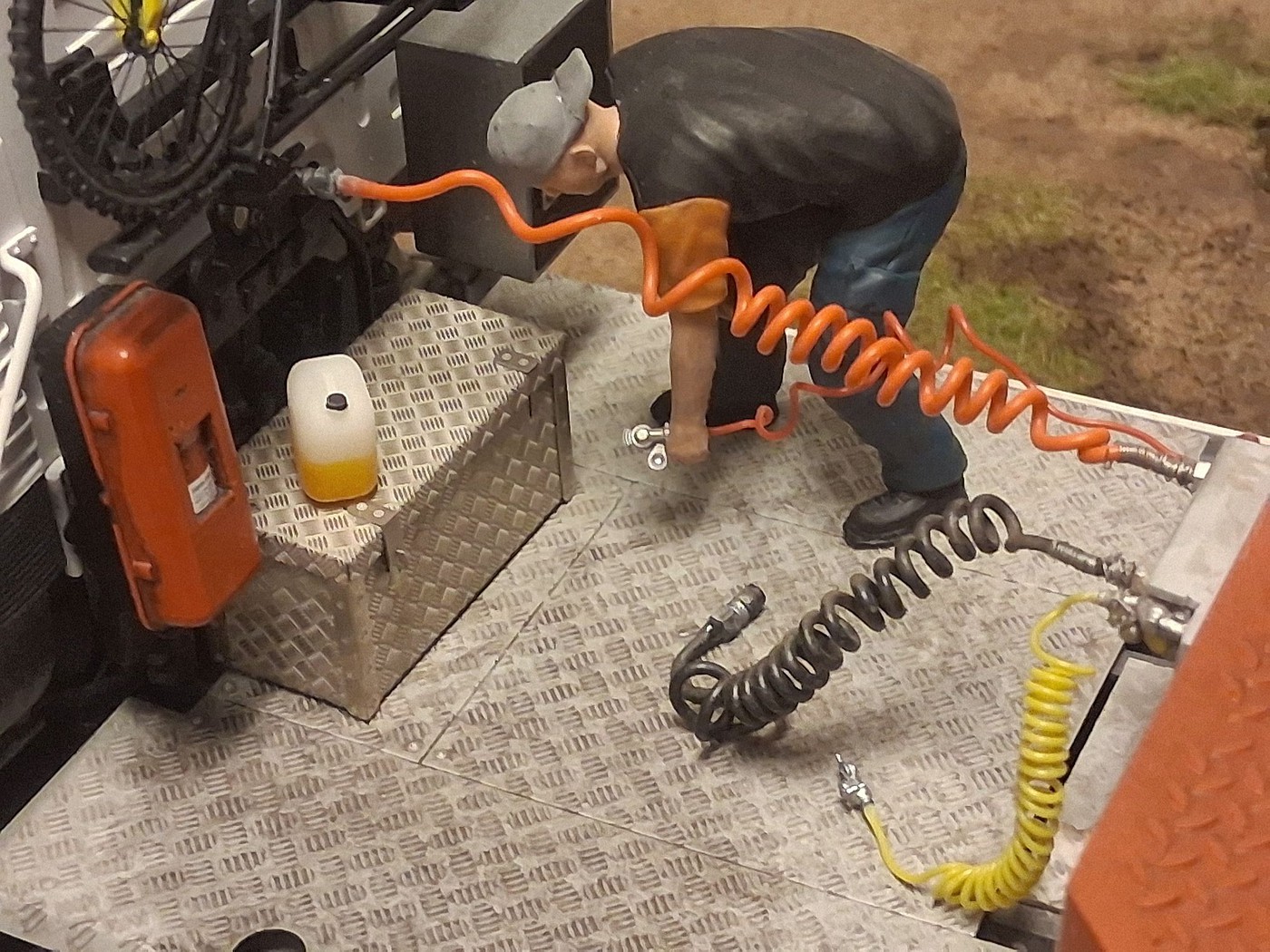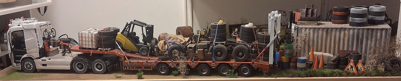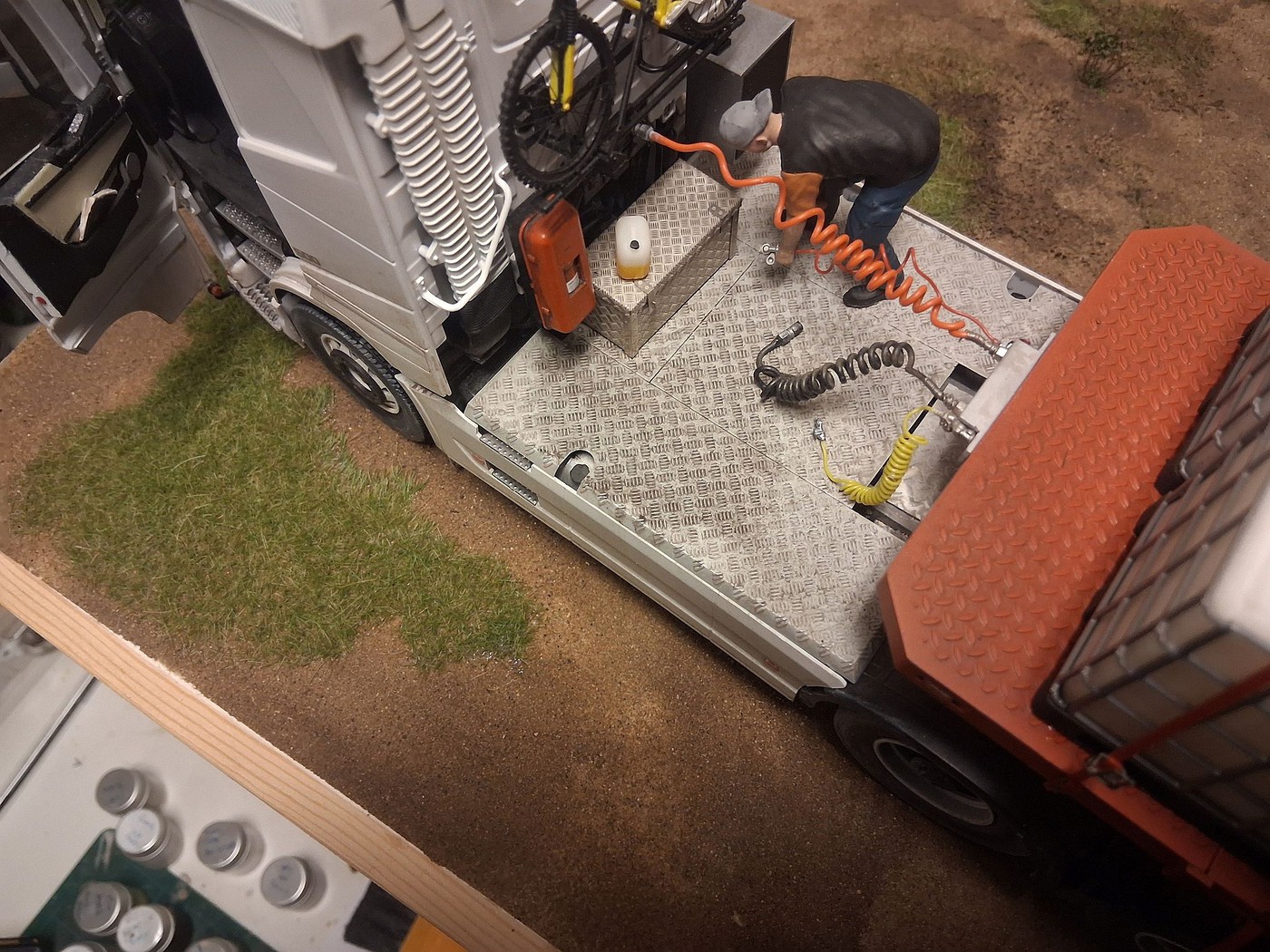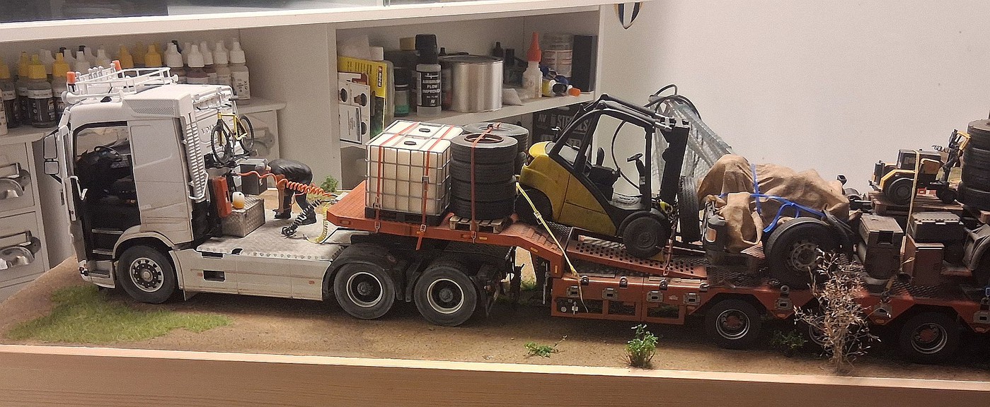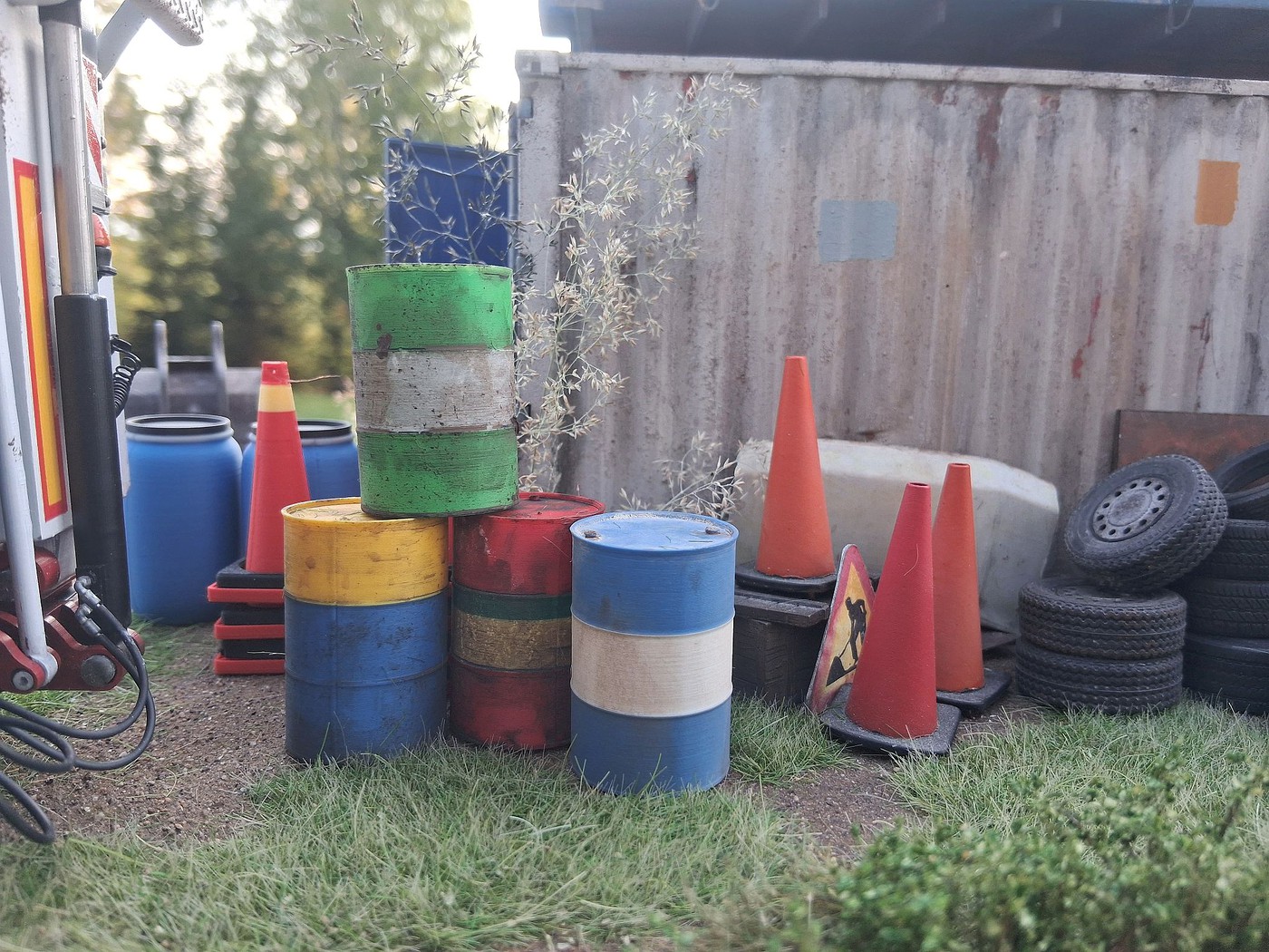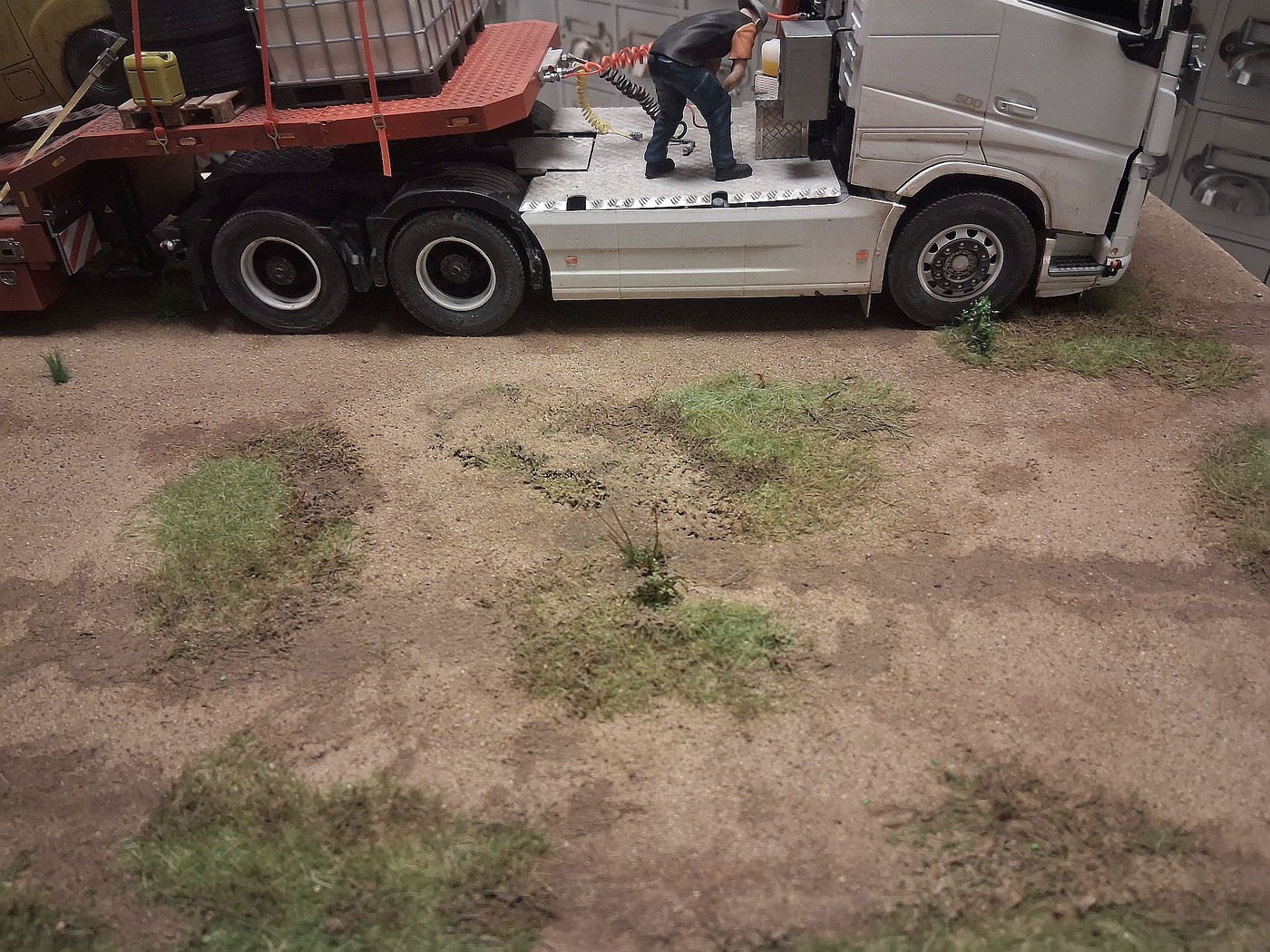 All of your different textures and colours make the surfaces so realistic, especially the aluminum deck on the back of the white truck. Weathered aluminum is one of the hardest finishes I’ve tried and you’ve pulled it off very convincingly.