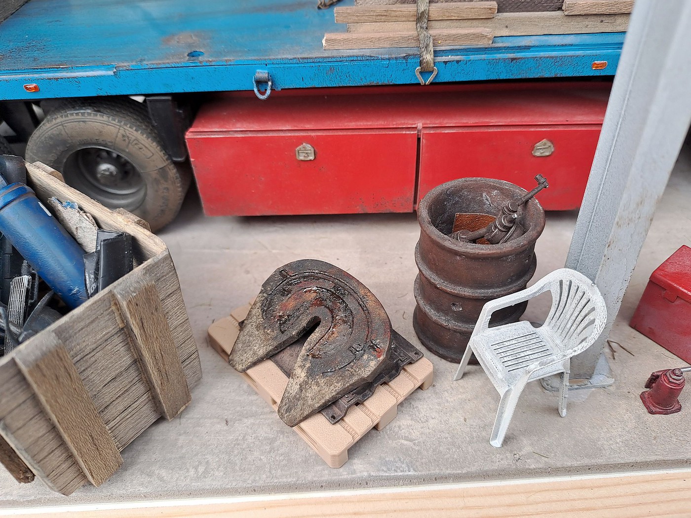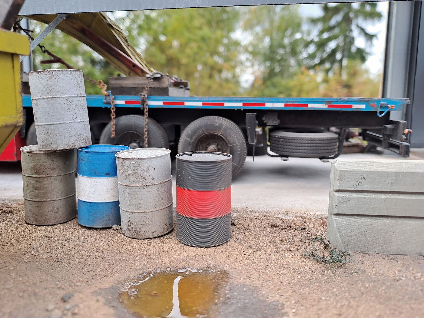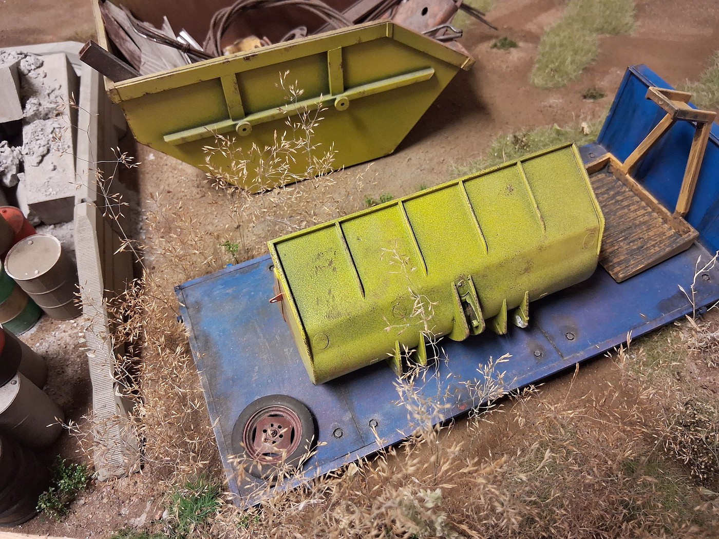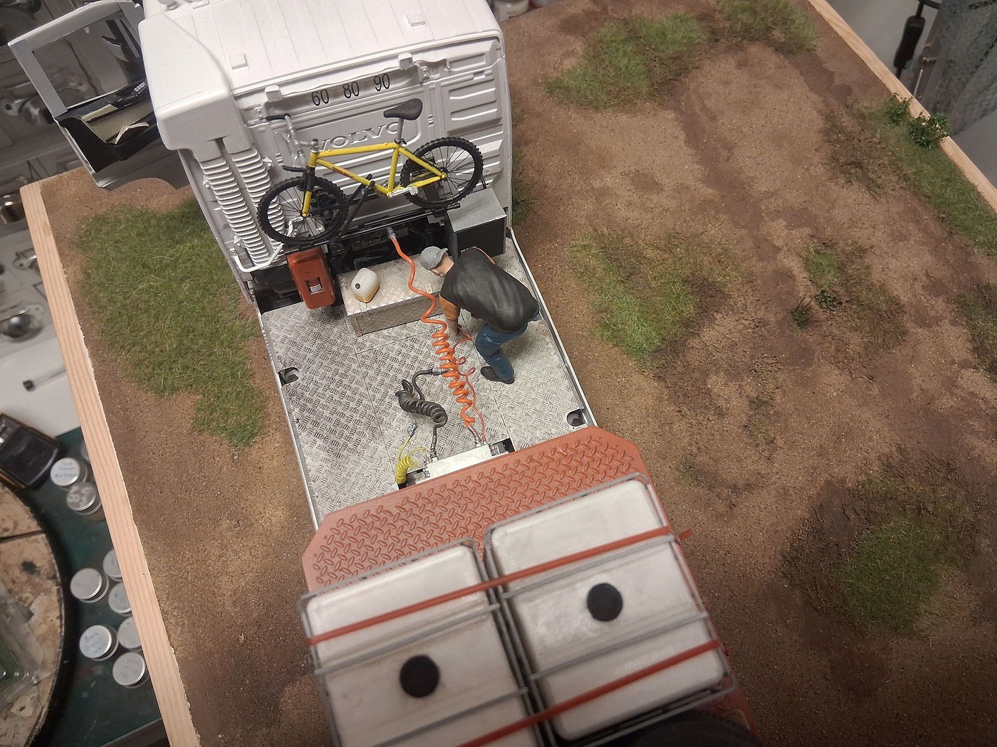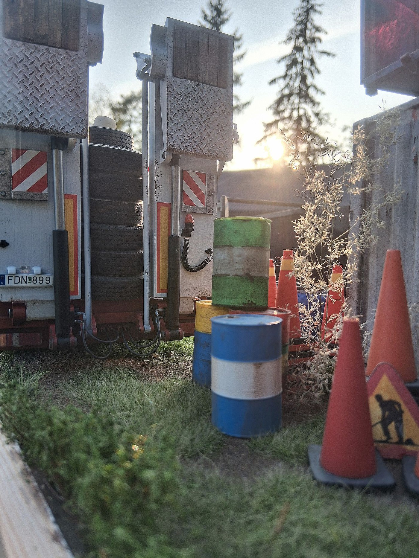 All of your different textures and colours make the surfaces so realistic, especially the aluminum deck on the back of the white truck. Weathered aluminum is one of the hardest finishes I’ve tried and you’ve pulled it off very convincingly.