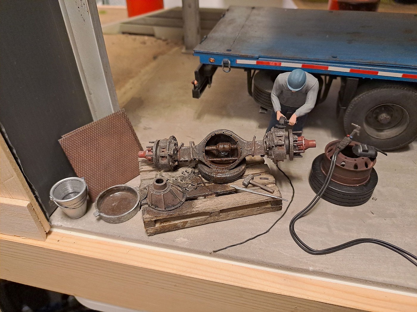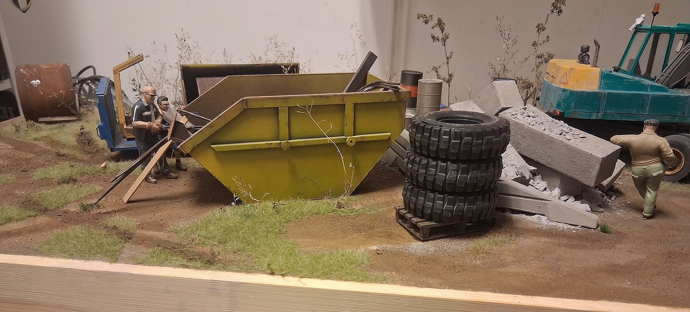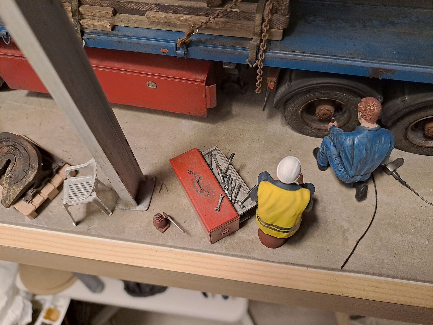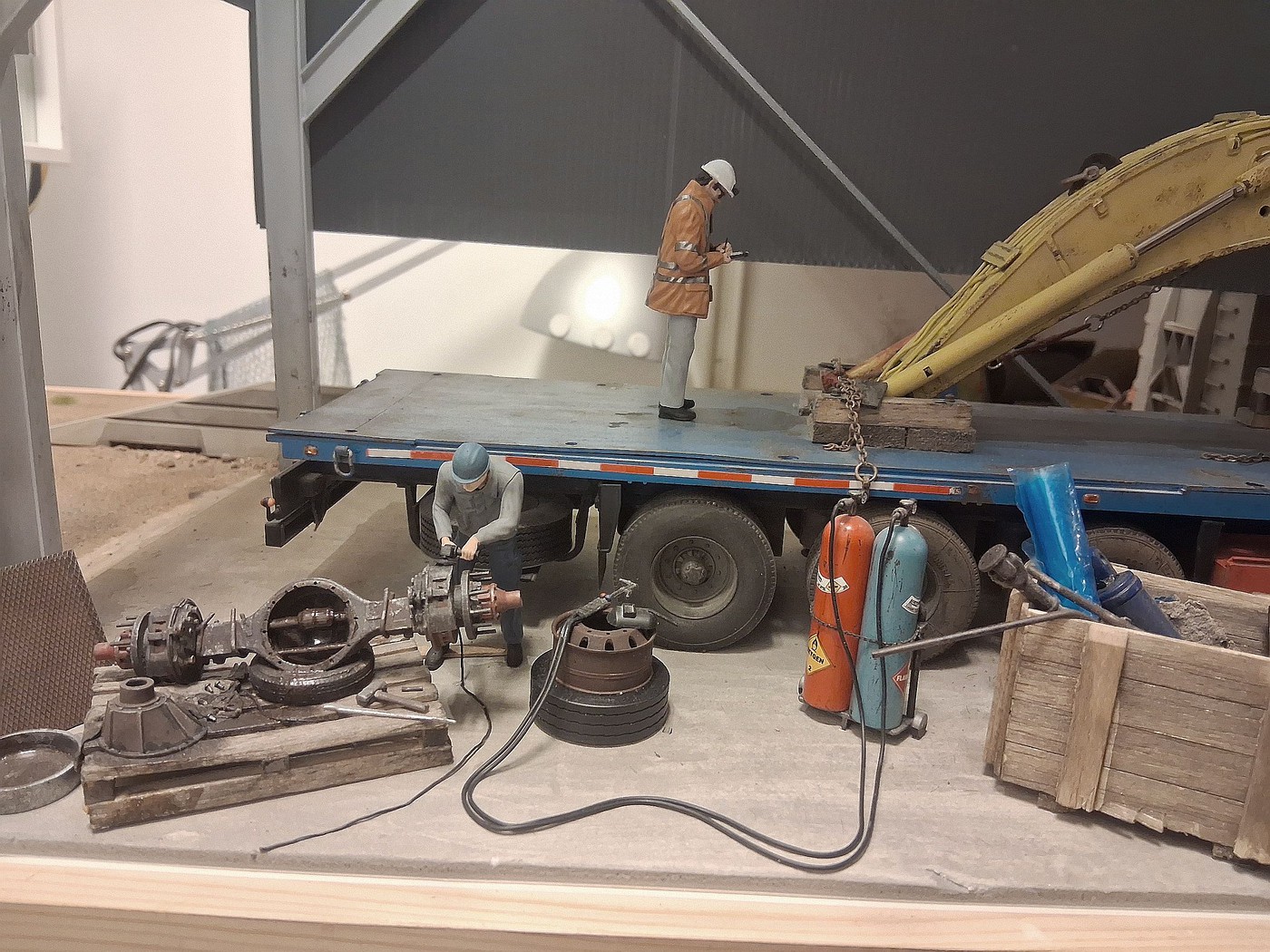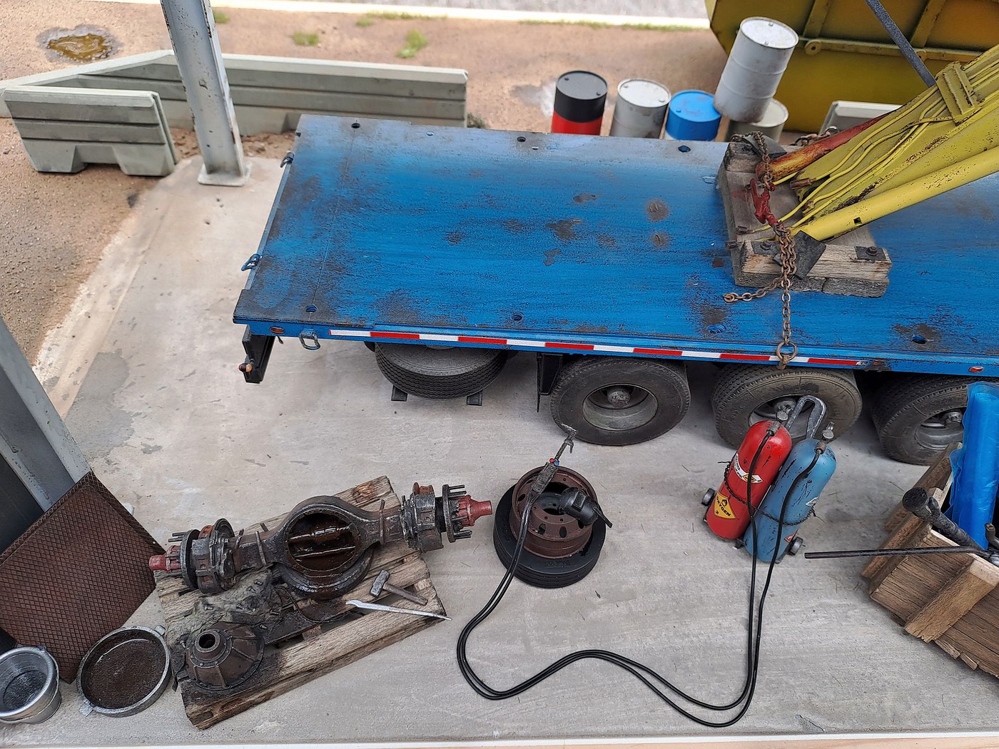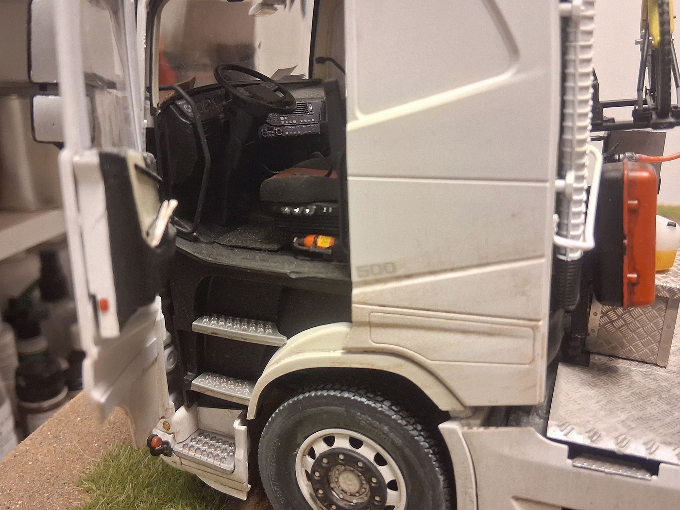 All of your different textures and colours make the surfaces so realistic, especially the aluminum deck on the back of the white truck. Weathered aluminum is one of the hardest finishes I’ve tried and you’ve pulled it off very convincingly.