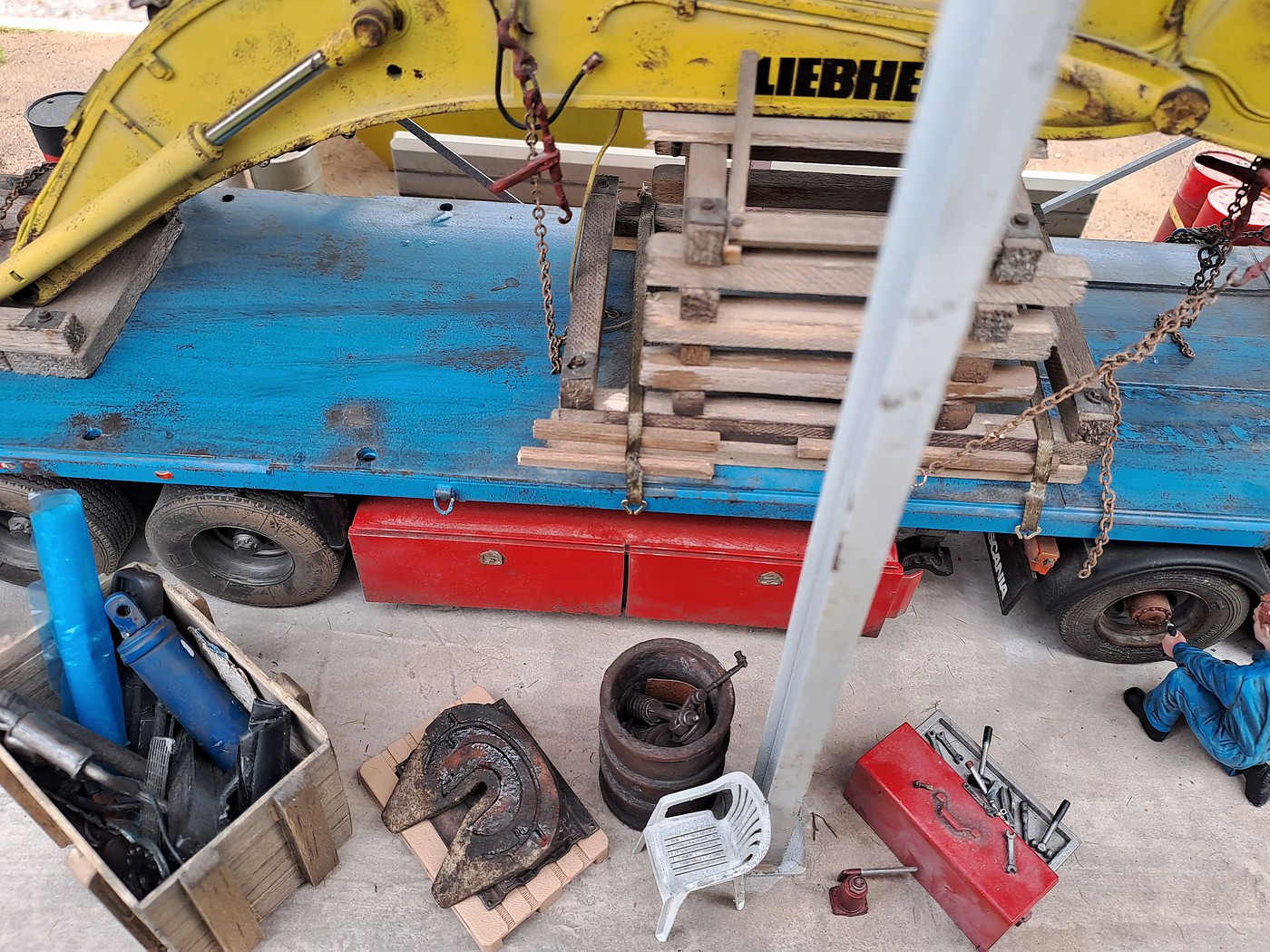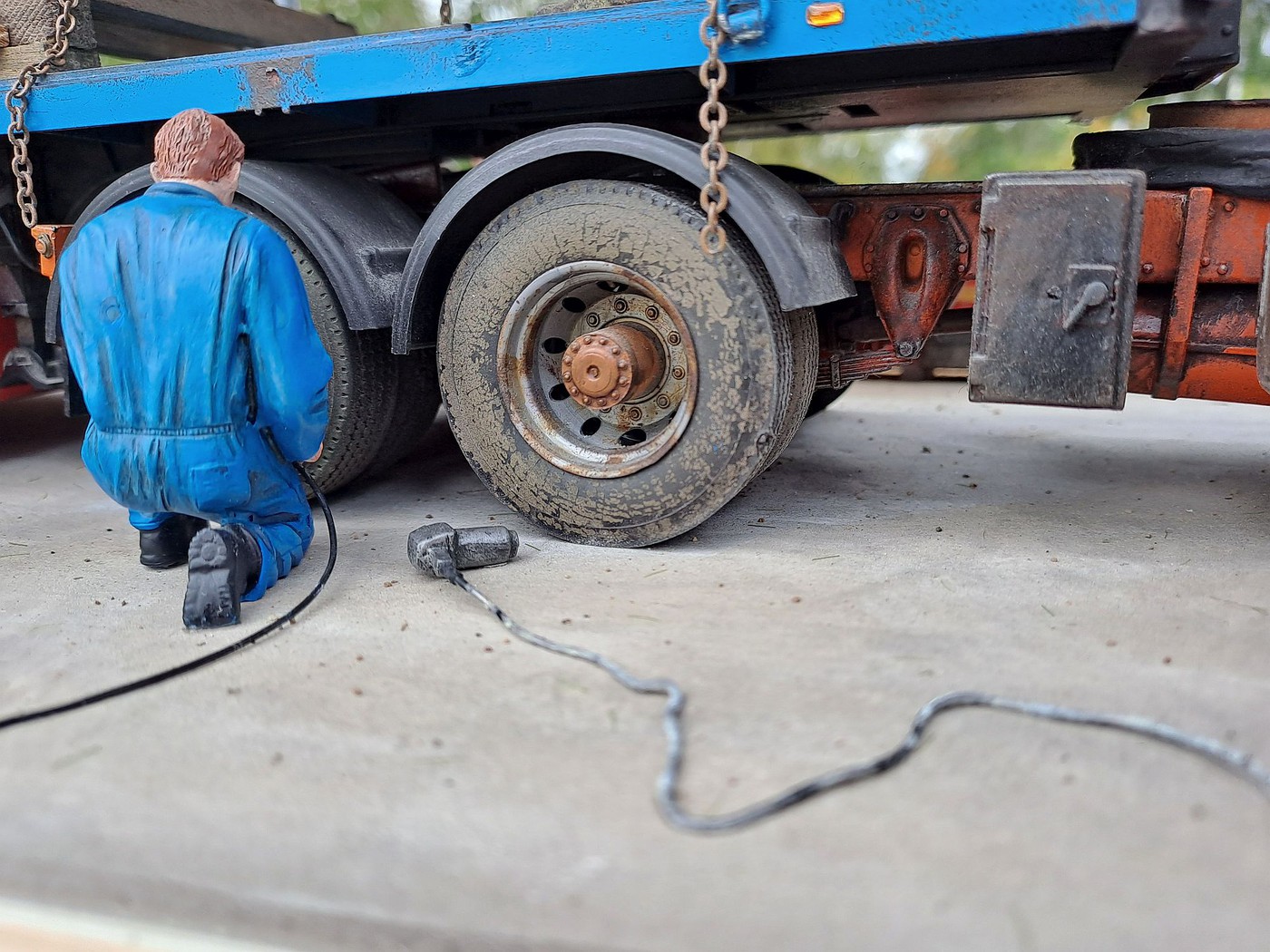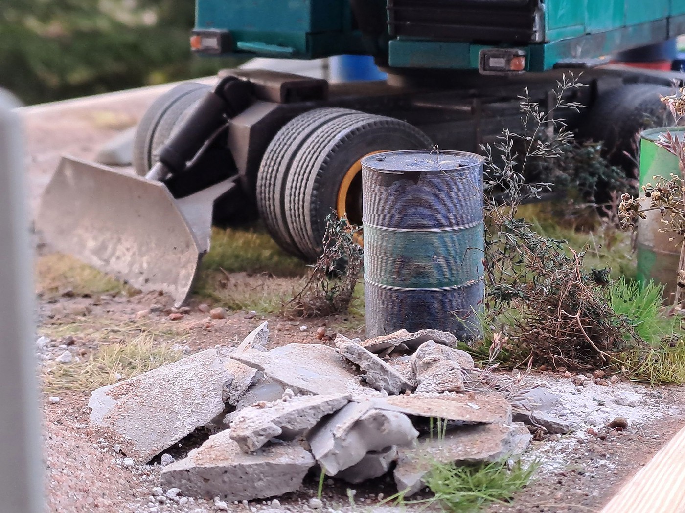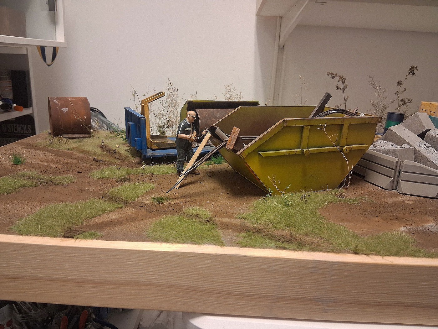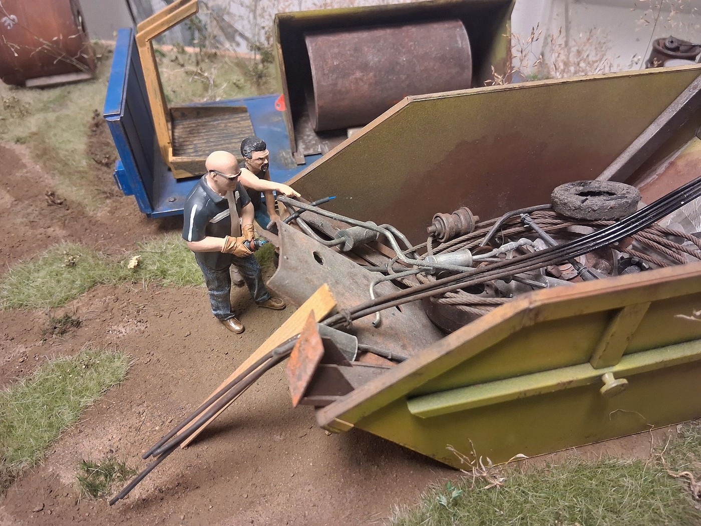 All of your different textures and colours make the surfaces so realistic, especially the aluminum deck on the back of the white truck. Weathered aluminum is one of the hardest finishes I’ve tried and you’ve pulled it off very convincingly.