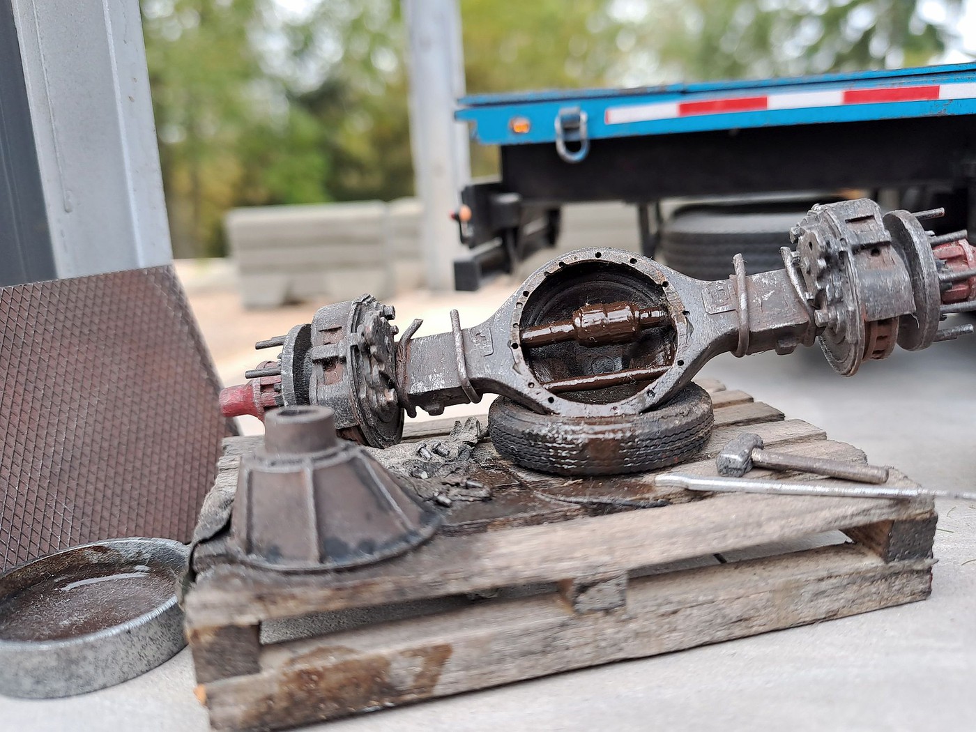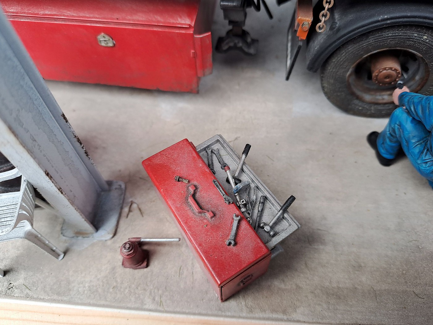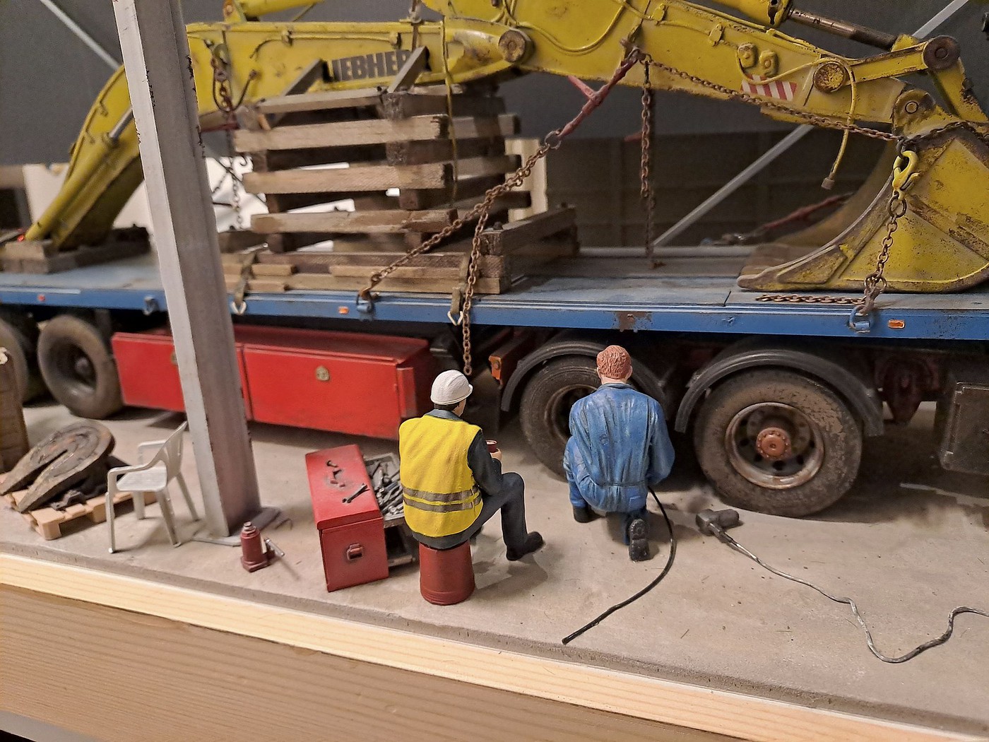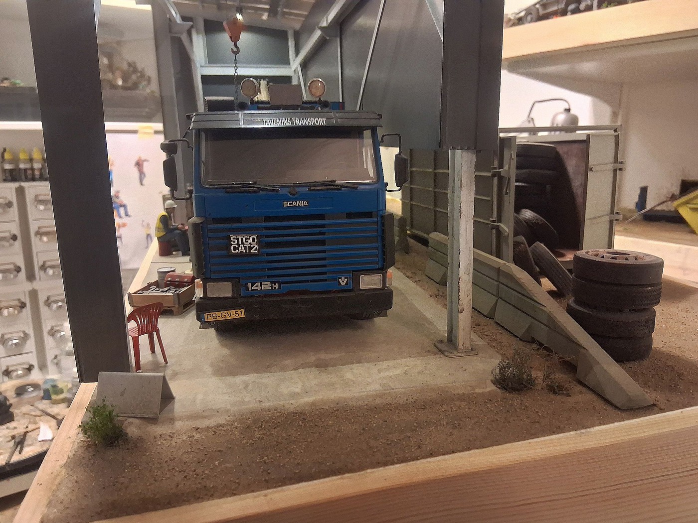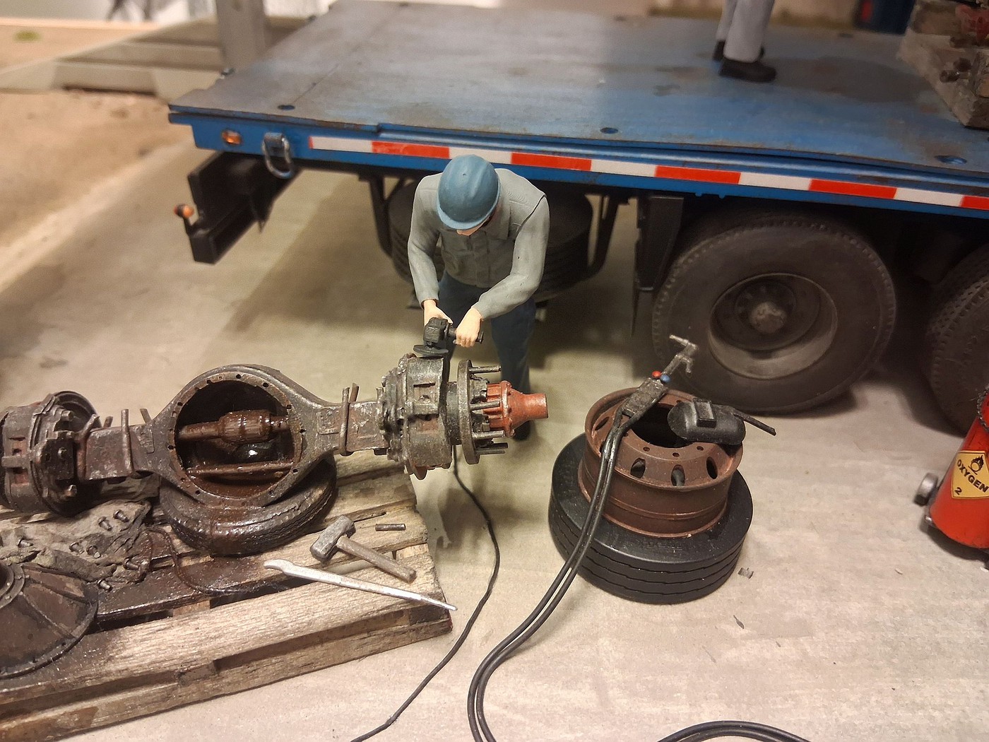 All of your different textures and colours make the surfaces so realistic, especially the aluminum deck on the back of the white truck. Weathered aluminum is one of the hardest finishes I’ve tried and you’ve pulled it off very convincingly.