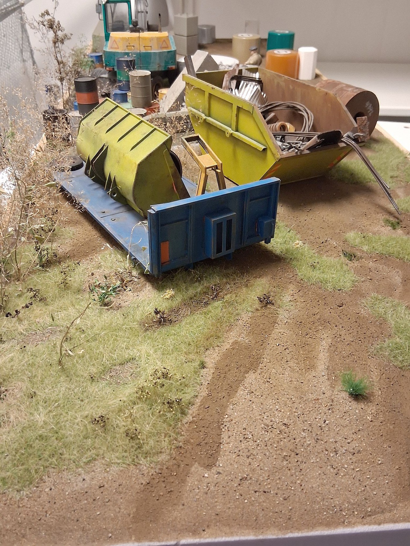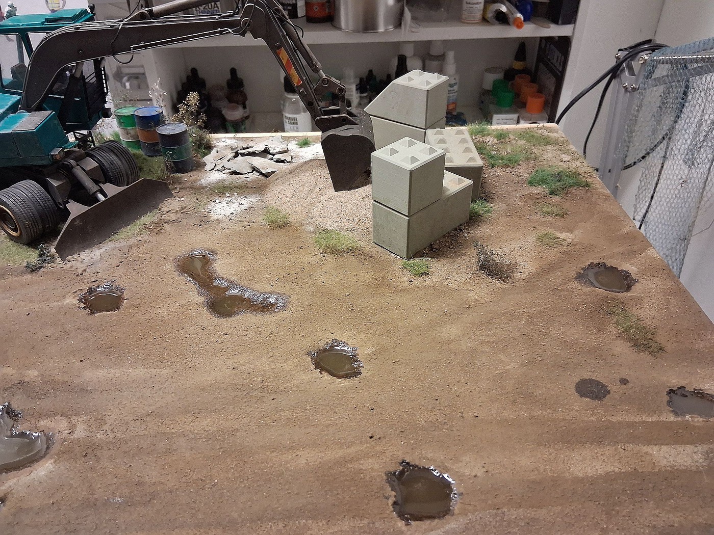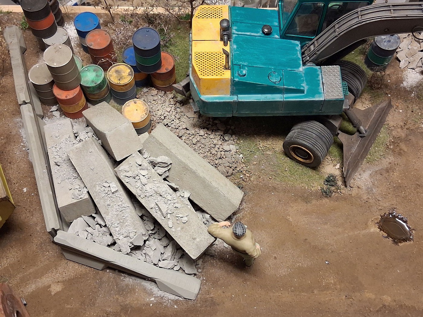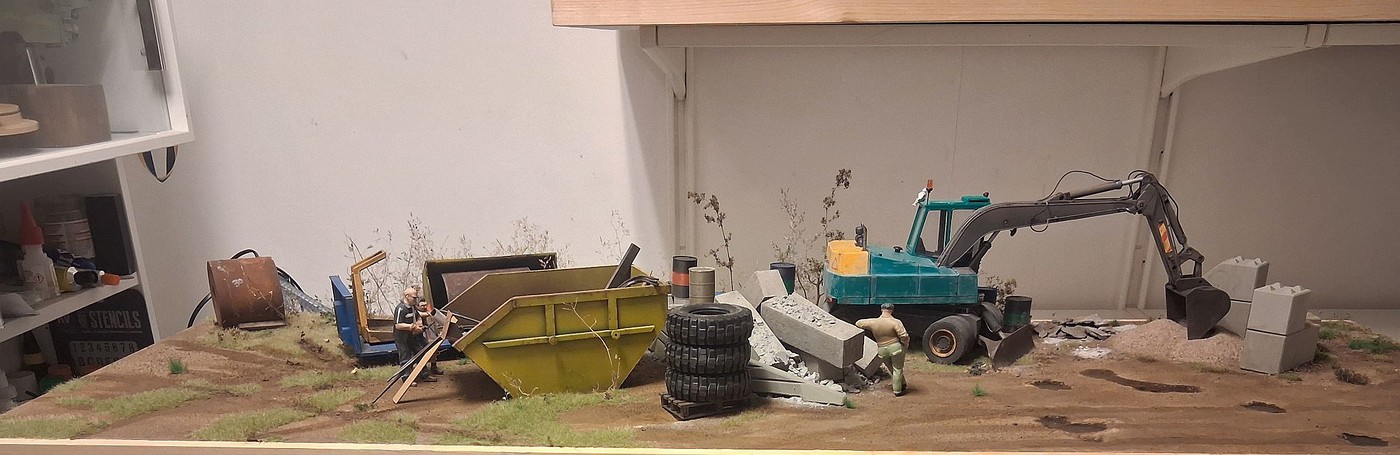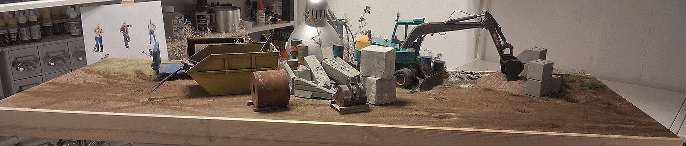 Here are photos of 3 section of a one large scale diorama, I have been working on for over a year now. So far so good. I have one more section(section 3) to do, that will connect all 4 dioramas together, in one long stretch, end-to-end. I am still adding details to the 3 sections presently, but overall, I am 99% done with them. Hope you like the different sections.