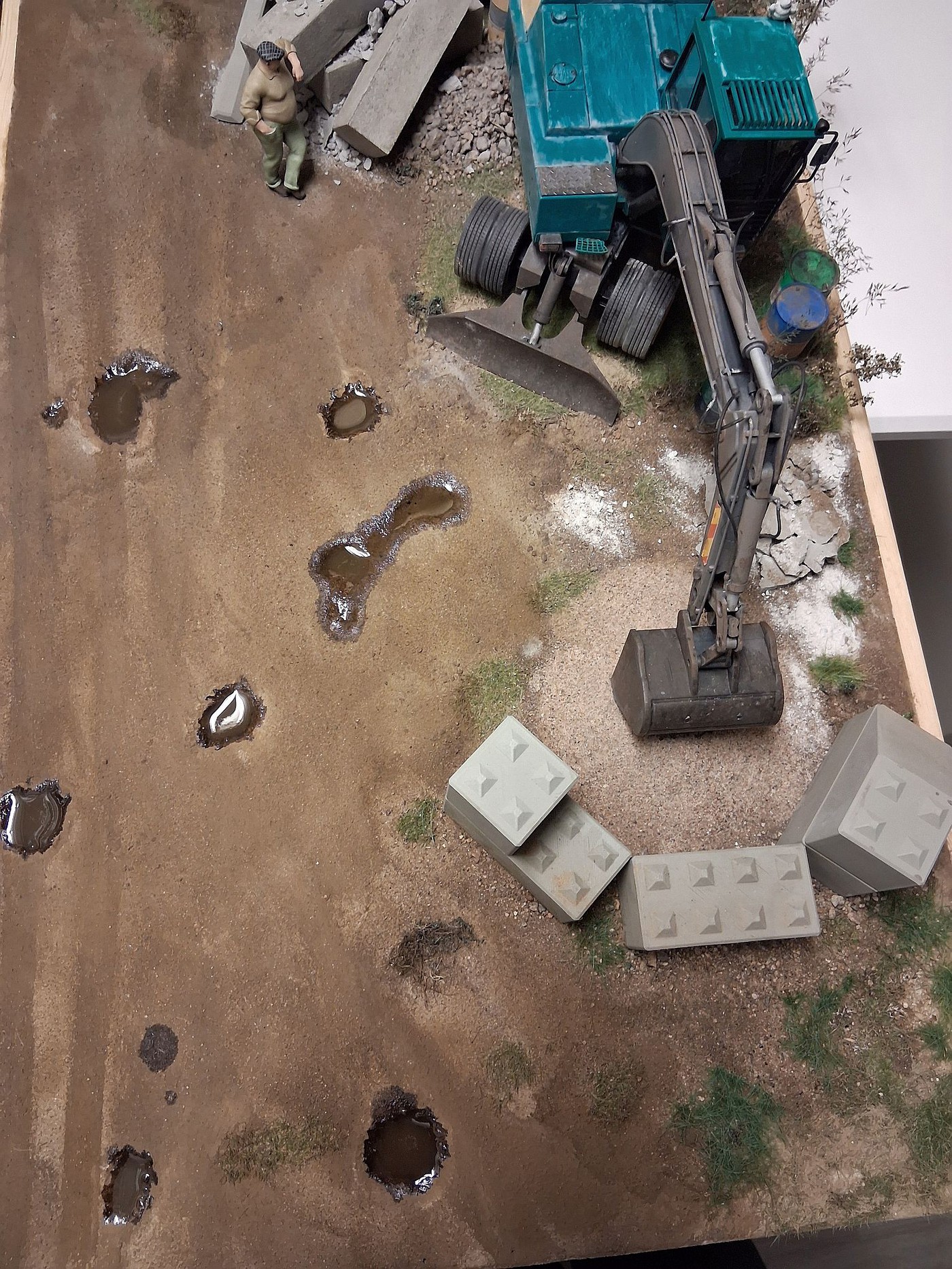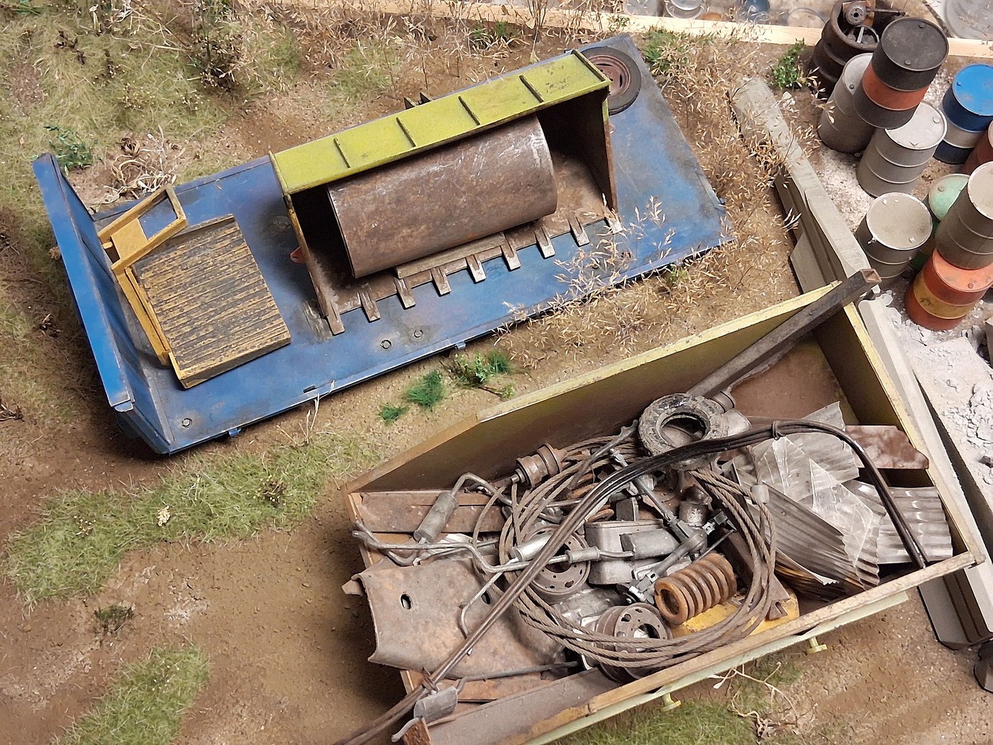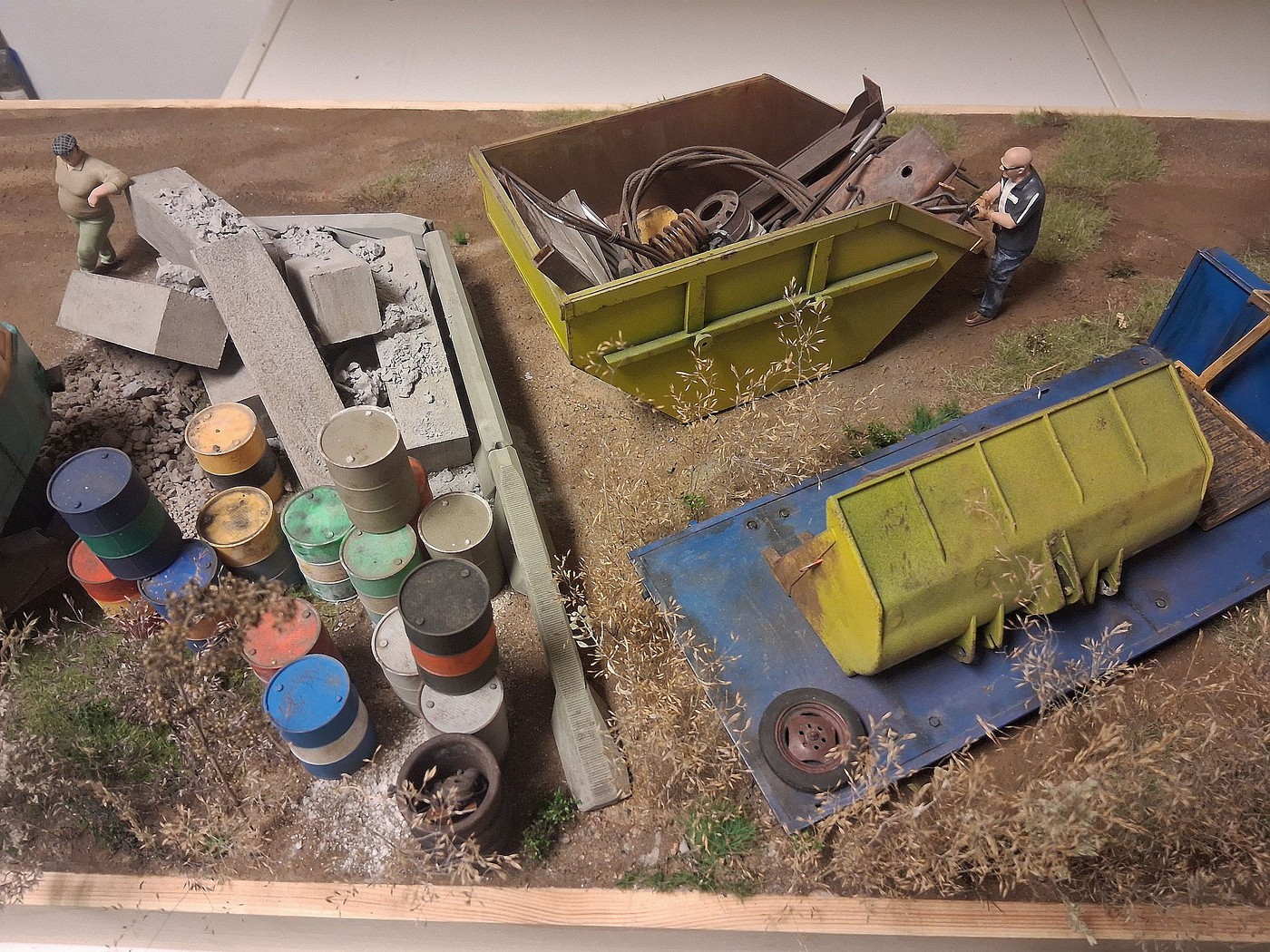 Here are photos of 3 section of a one large scale diorama, I have been working on for over a year now. So far so good. I have one more section(section 3) to do, that will connect all 4 dioramas together, in one long stretch, end-to-end. I am still adding details to the 3 sections presently, but overall, I am 99% done with them. Hope you like the different sections.