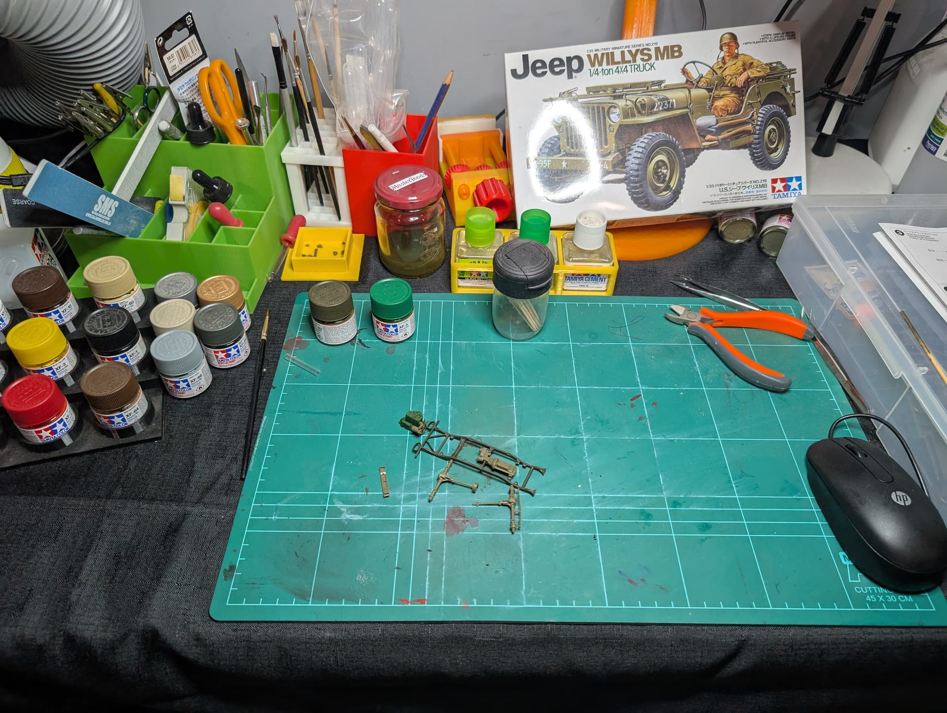 Well finally got a started my build something simple and enjoyable at this point just using hairy stick and Tamyia acrylic’s below is my workbench and started model.