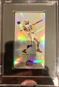 The third card is what’s known as a eTopps card. It was only sold via internet. It’s very odd style is derived from the original T-206 Tobaco Baseball cards at the turn of the 20th century. It’s been incased in a factory sealed acrylic case and has a holographic tape sealing the card. If the card gets tampered with, this holographic tape beaks apart and shows clear evidence that the card has come into a compromised condition rendering it valueless. This card is numbered at 0982/1499.