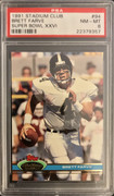 This is my most number one cherished card. This particular card has a embossed Super Bowl symbol on the top right hand corner. It is a must to purchase this card from either Beckett grading services or PSA/DNA as I’ve been told that these cards were counterfeit by creating a embossed Super Bowl symbol.