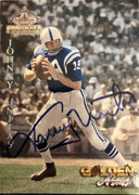 In my very humble opinion, Johnny Unitas was one the the greatest QB’s to ever play this game. His statistics are amazing and his play making abilities by standing in the pocket and throwing the ball down the field is legendary. In 1969, in commemoration of the NFL’s 50th anniversary, Johnny Unitas was selected as “The greatest QB of All Time” or better known as the GOAT! I was extremely lucky enough to obtain this autograph card of Unitas many years ago. It is one of my top 5 cards of all time.