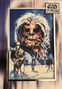 Out of sheer curiosity, and being a huge Star Wars fan, I purchased some Star Wars cards at my local Walmart. This was the hit in the pack. The photo of Chewbacca is made out of silk screen material.