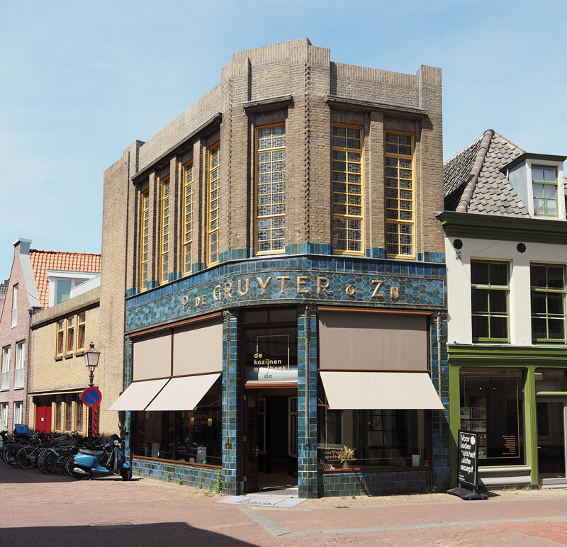 Surely I know that building… It is from 1928 in the so called Art Deco style. The Gruyter was a chain of green grocers that at it height had 600 stores. But the advent of self service super markets caused it’s demise. Luckily this store has a monumental status, and has been restored recently.