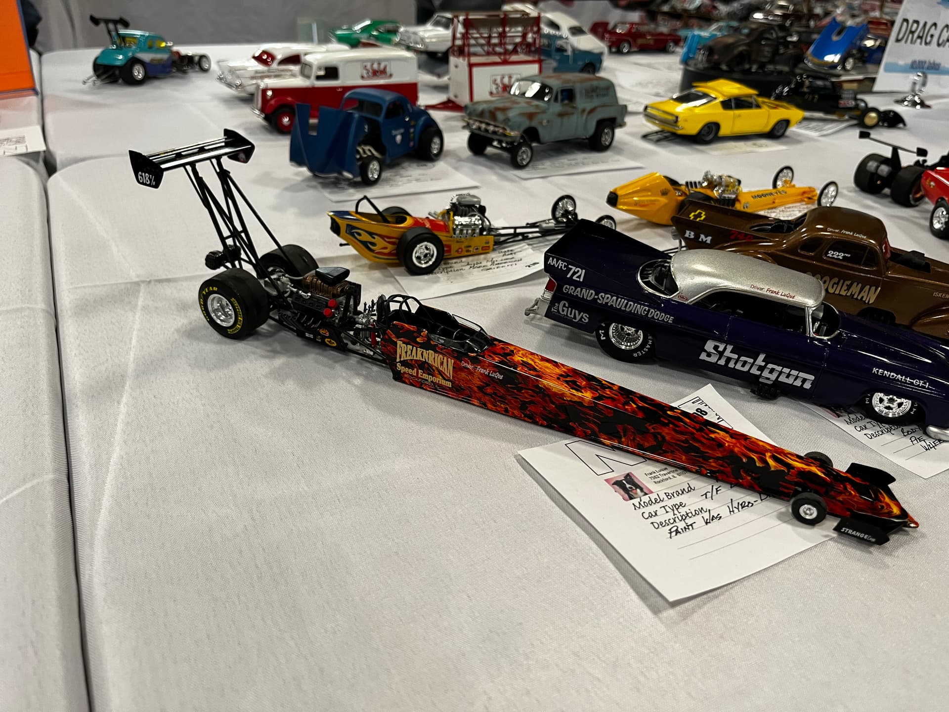 The finishes on these models are quite impressive. I don’t build many shiny things, but this gives me a lot of inspiration moving forward on my Auto builds. My favorite is the dragster with the hydro dipped flames. Would love to have that on my shelf. Thanks for all the photos.