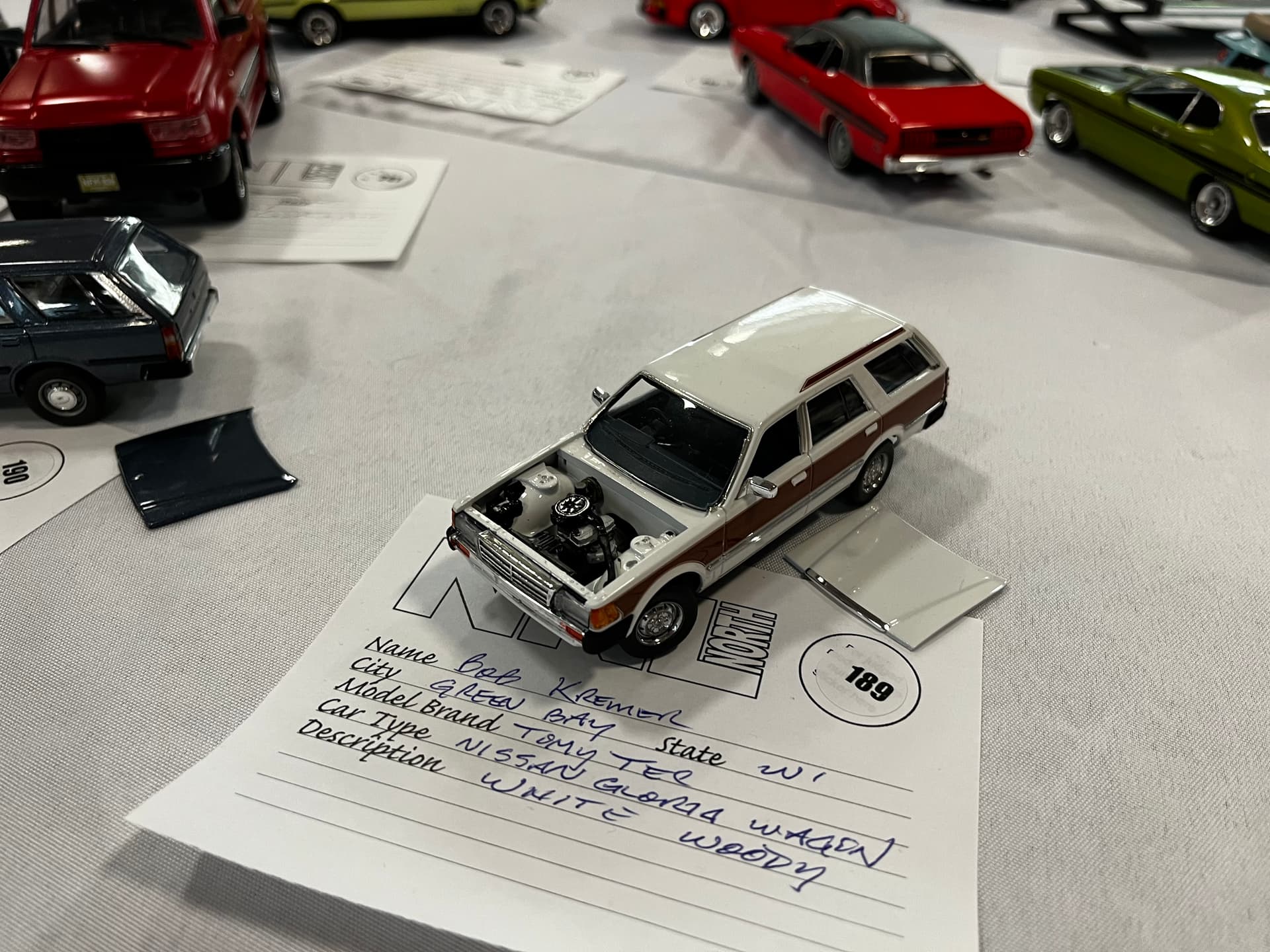 Tim, It was Bob K. with the white Nissan wagon. I believe the sports car in the Gulf scheme might also belong to another modeling friend, though the name was blocked from view.