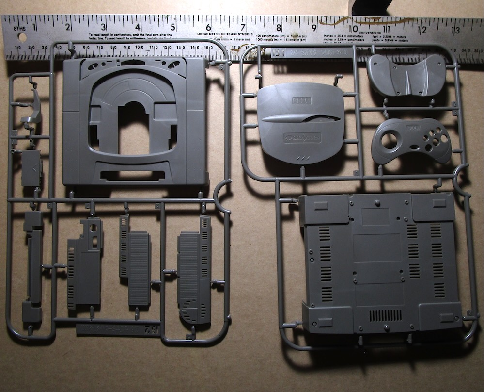 I donāt know what a 1:1 Sega Saturn looks like - we had Playstation - so here is a couple sprue shots next to an inch ruler.