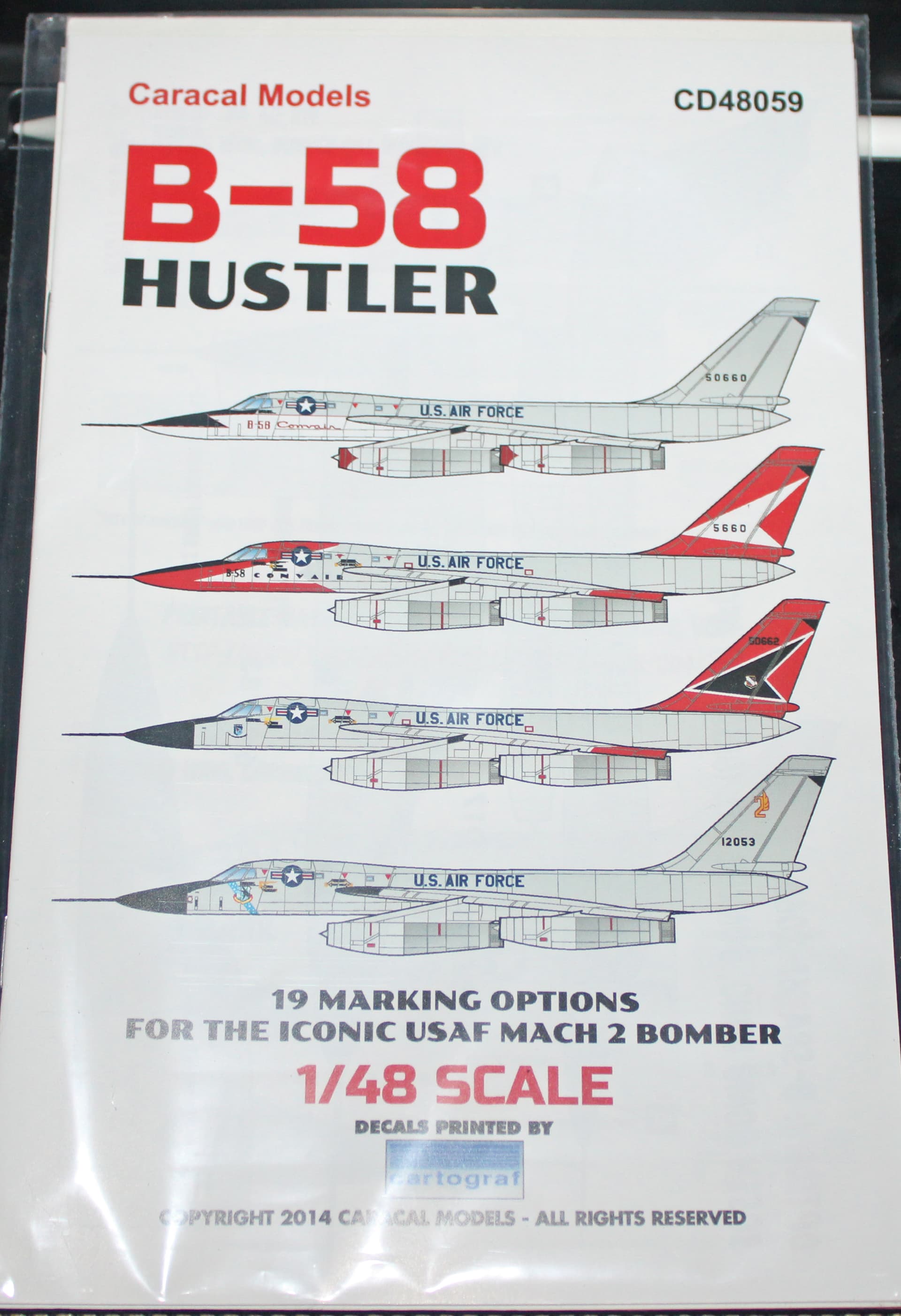 A few years ago I bought another Monogram B-58 Hustler in 48th scale, but the decals were not in great shape. Probably usable with certain precautions. But I received an e-mail from Caracal Decals, who were releasing this set for the kit, I could not resist.
