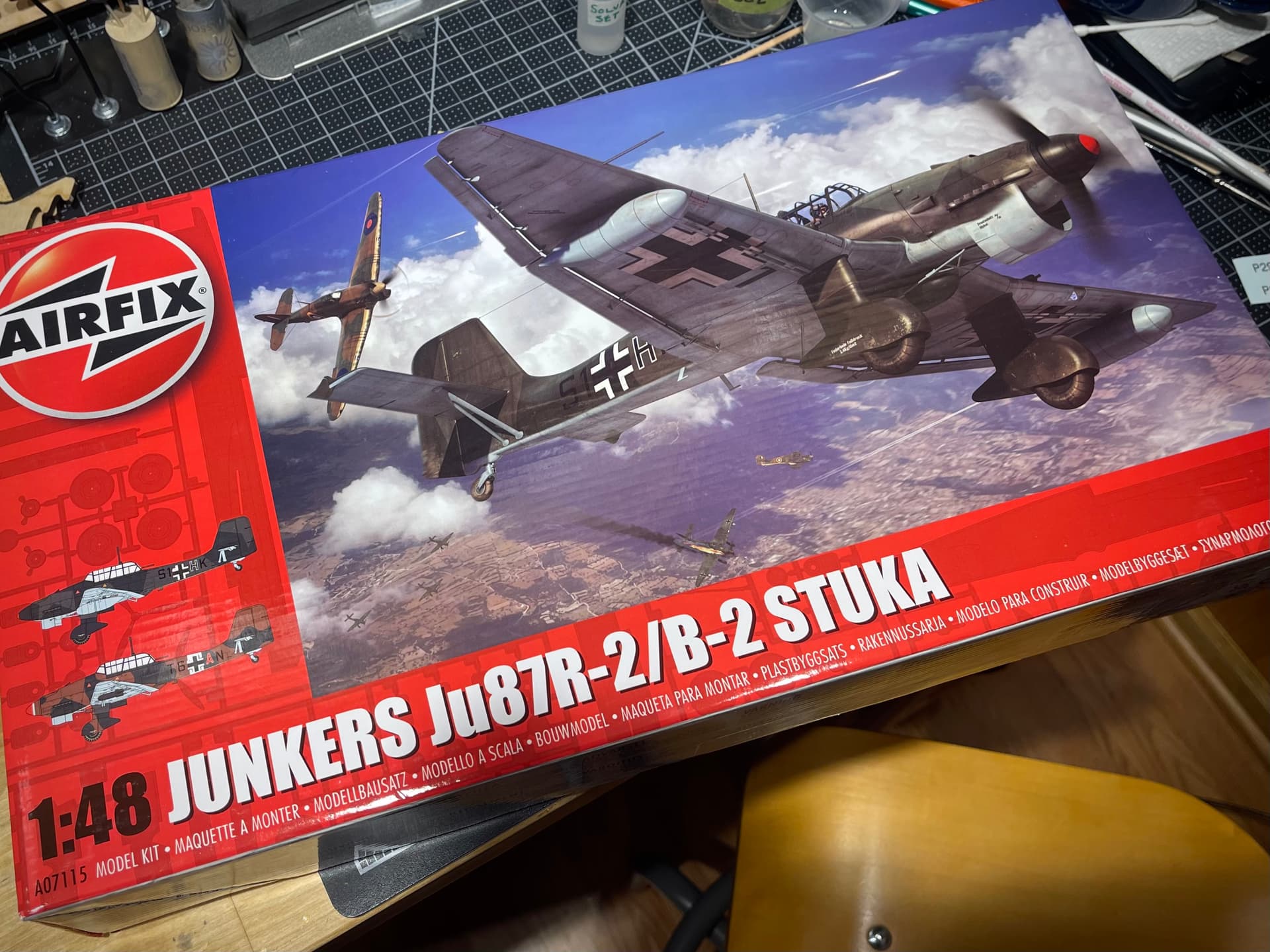 I have no idea when I’ll get to this build. My previous build of this kit currently hangs from the ceiling in my workshop, but this one is going to be wheels down and will go on a bedroom wall in the house, right above the Stan Stokes print I have of the Hustler.
