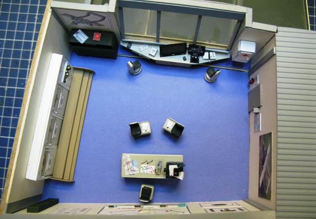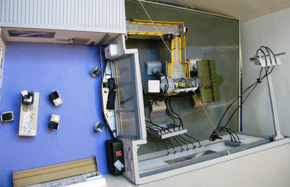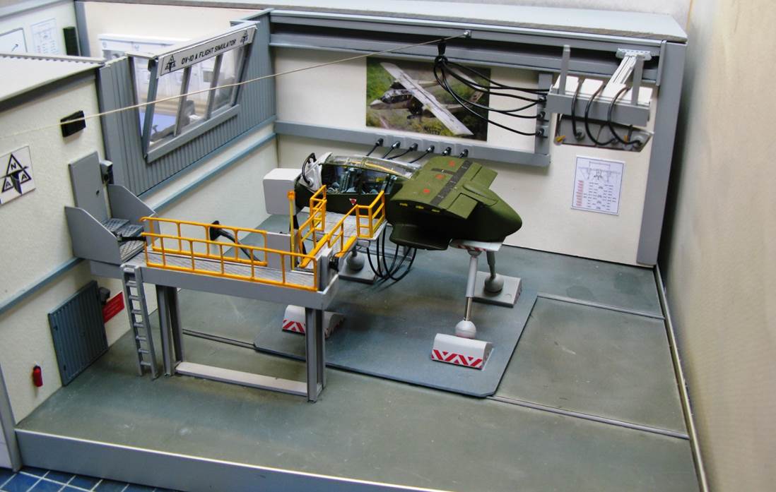 If my second attempt to build ICM’s 1/72 OV-10 A Bronco was successful, an error in my first approach left me with a detailed cockpit… in a warped nose. Wanting to somehow use it, I completed the cell with a few parts and transformed it in a flight simulator, adding TV screens to the windows, actuators, cables and a gangway. All of this is scratchbuilt and the same applies to the adjacent control room. Not sure it ever existed, but I sure took pleasure in imagining it