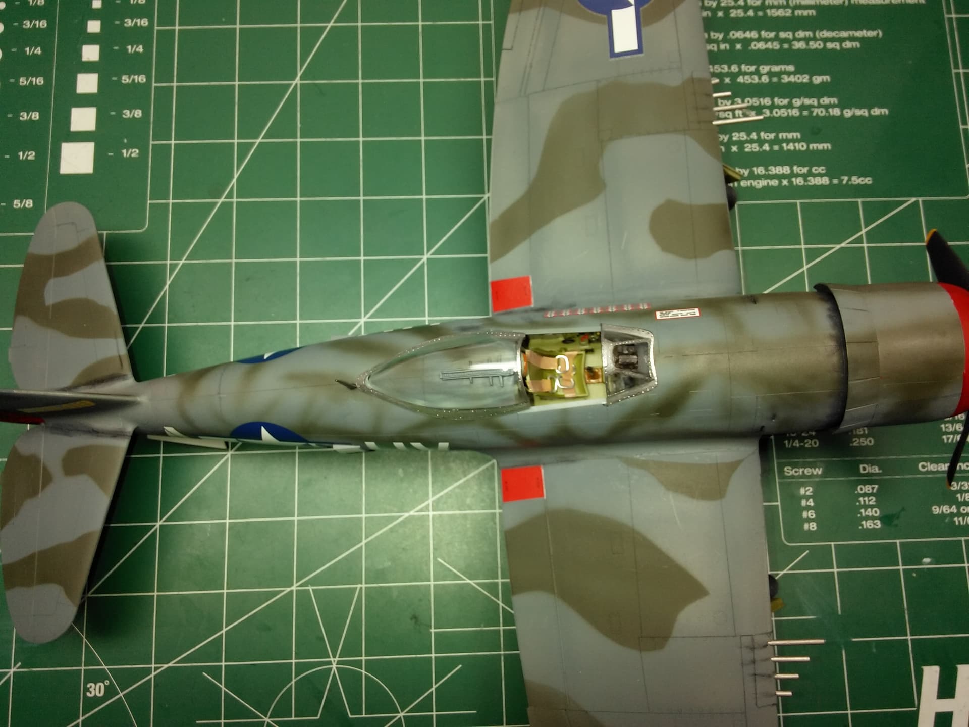 For the P-47, I cut patterns from index cards and taped to top wings/elevators and airbrushed. The lines on the top and sides of fuselage was airbrushed by freehand.