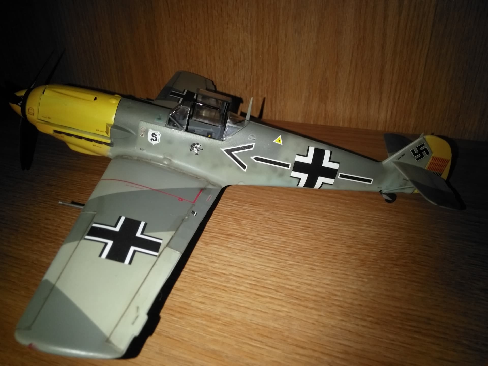 The bf-109 was rather simplistic - straight lines on the top of the wings - a curvy pattern on the elevators. And the fuselage spine gently airbrushed ahead and behind the insignia - and spackles along the side of fuselage by using low air pressure and varying the amount of paint applied.