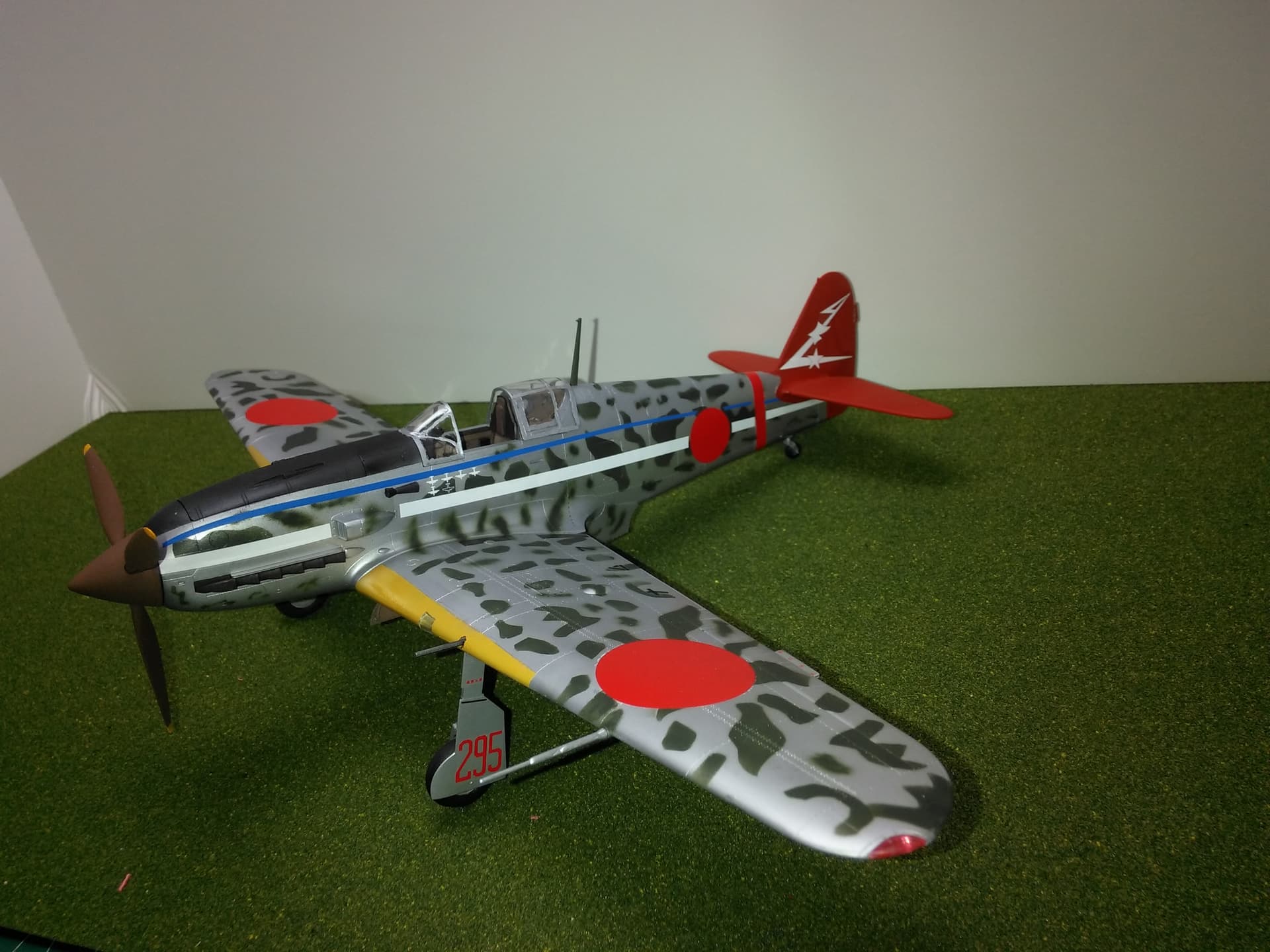 For the KI-61, I took a think piece of paper and used a hobby knife to cut out random patterns across two or three rows of the paper. Then it was just a matter of holding the paper against the fuselage/wings and air brushing.