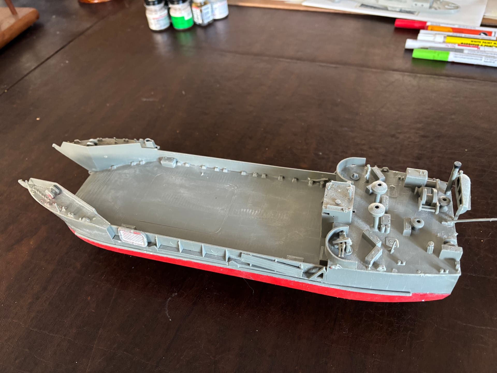 The Lindberg LCT, or what is left of it. Don’t remember the scale, could look it up. Lost the tank and other parts, as you can see.