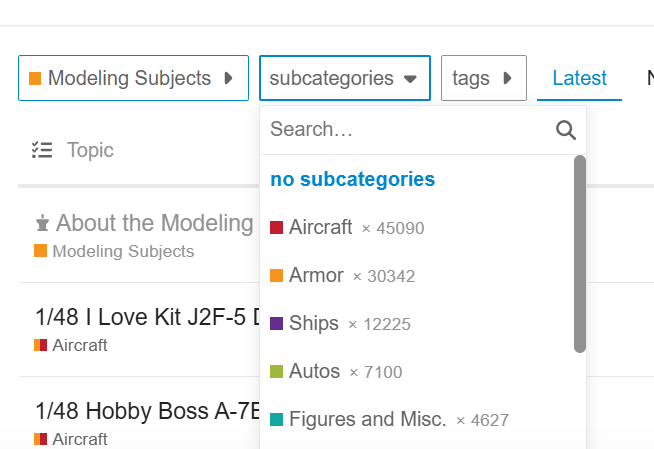 In the lefthand panel, under Categories, there is also the choice “All Categories”, Missileman. I’ve been using that, too. The menu that opens on the right-hand side looks like this: