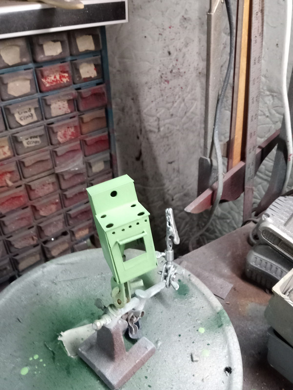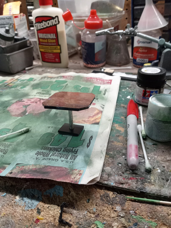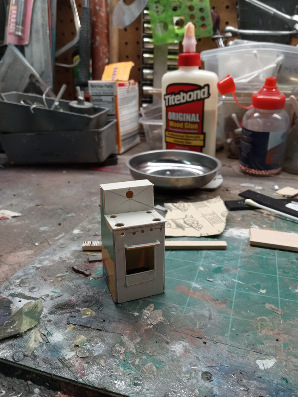 I decided to make a mini fridge for this application out of sheet Styrene and chrome sprue fir the handles (which will be removed when I primer and paint it.).