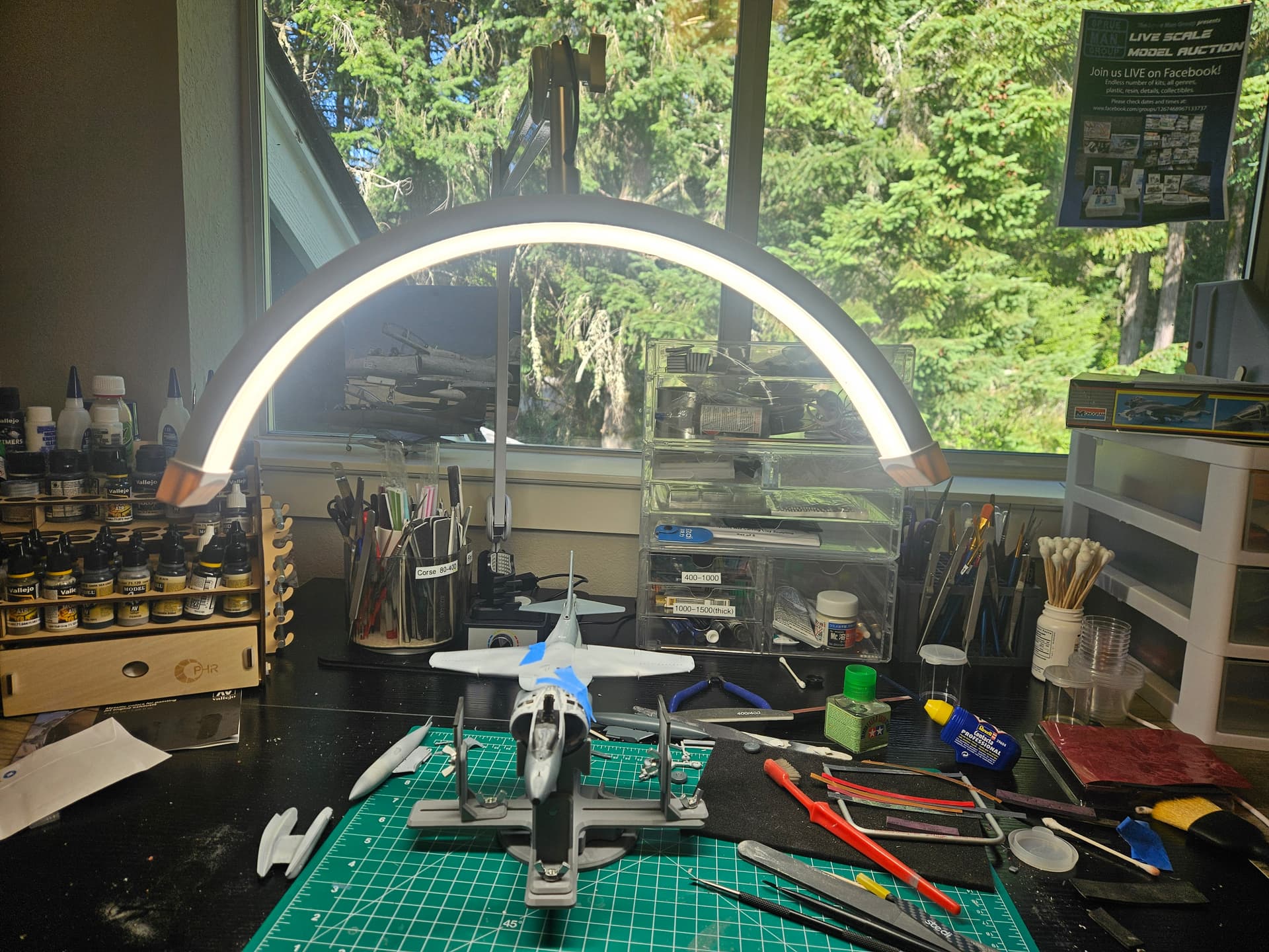 I’ve heard about your challenges in the winter Tom! I’m always on a quest for more light and I am also looking at a redo of my workspace. I’m still new but as I collect finished models, I need a way to display them, especially when I start working on my 1/48th C-130, B-58 and B-1B.