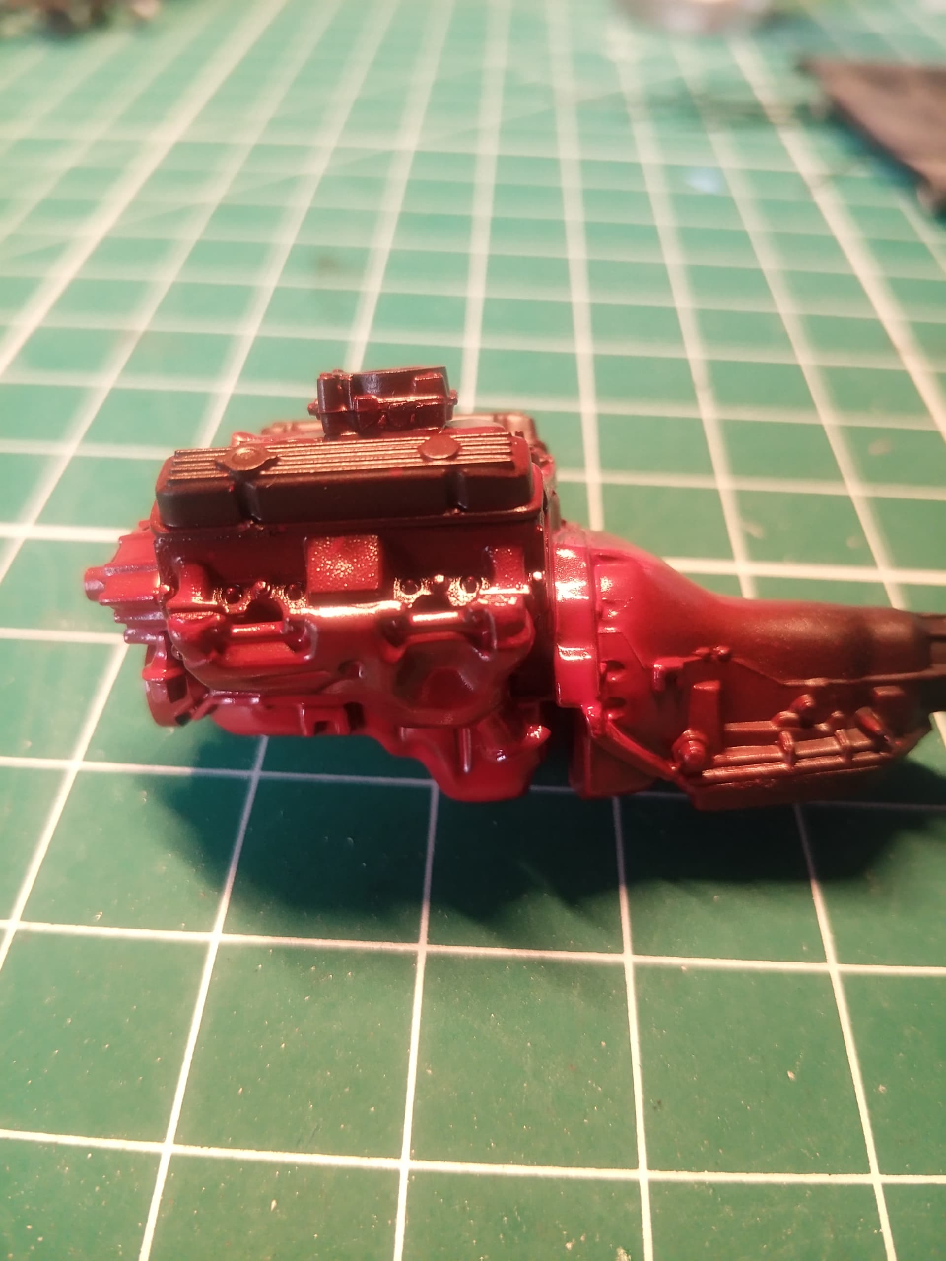 So the chassis is done and I started the detail painting for the engine bay.
