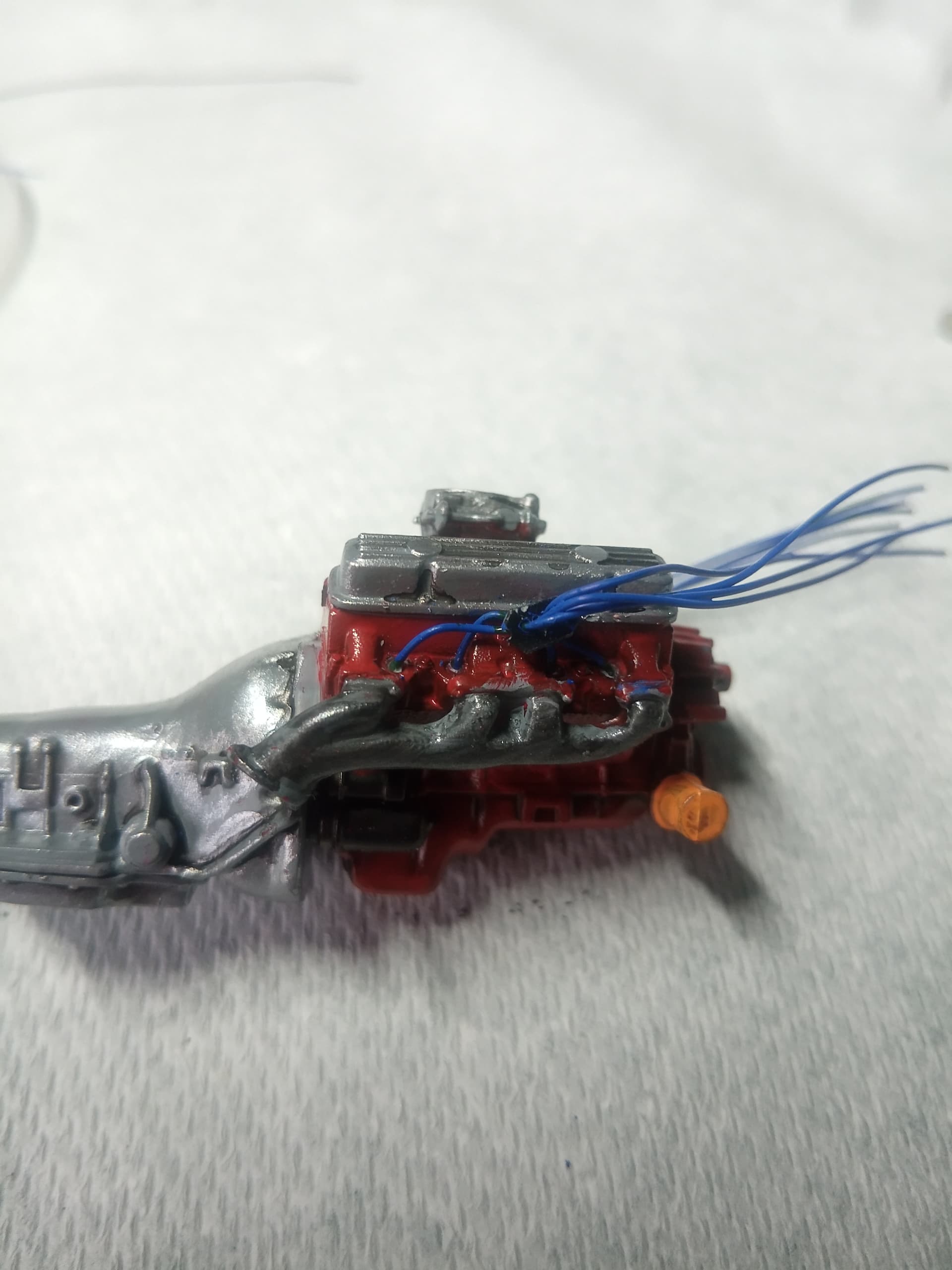 Using 23 gauge florist wire for the spark plug wires.