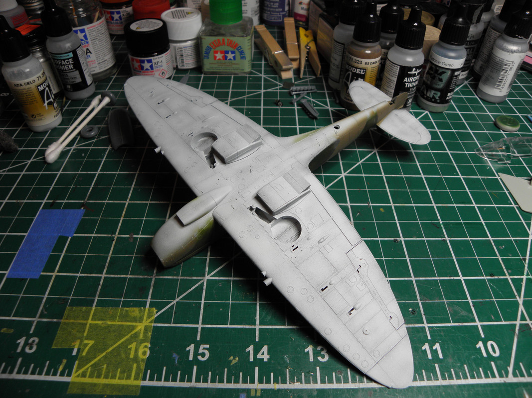 Got 'er done! After sanding with a 320 grit sponge I sprayed the areas with a black primer. Once fully dry I’ll tell if an area still needs work. after that I’ll wet sand the areas to get an nice smooth finish the rescribe. Luckily the panels were attached like a ship so the patern should be easy to follow.