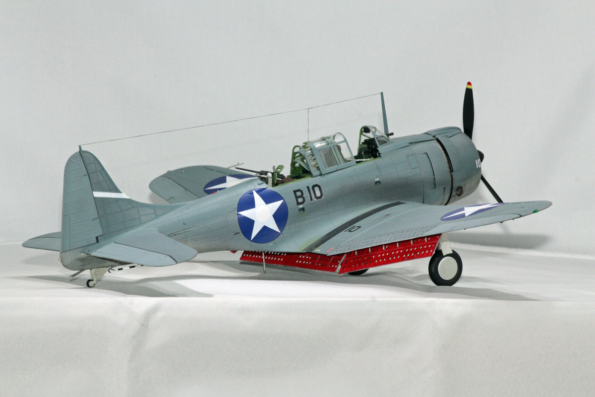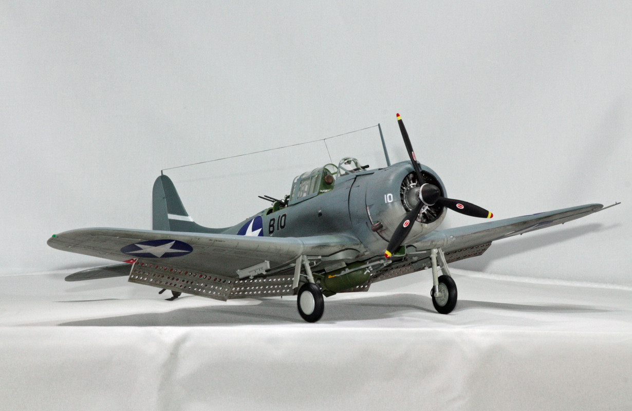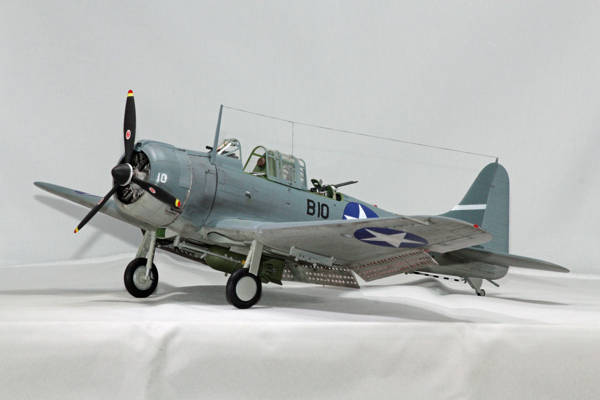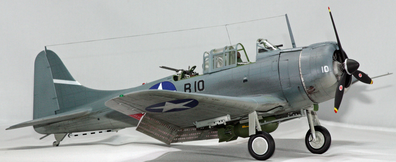 The SBD Dauntless has always been a favorite of mine, going way back to when I was a kid and first built Monogram’s more-toy-than-model Dauntless kit. I probably built that one half a dozen times growing up, with one in the stash now as well. I remember with a good fit of fondness one summer when my brother and I built a replica of Sharpstown Mall (big mall in Southwest Houston mentioned briefly in the movie The Right Stuff) out of playing cards - and then set to dive bombing it to smithereens with our Monogram Dauntless dive bombers.