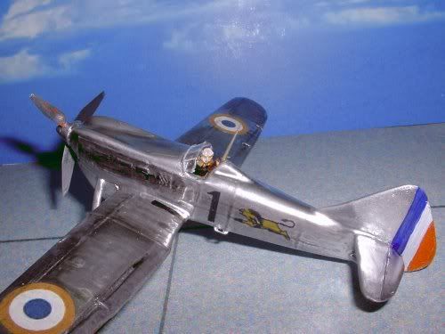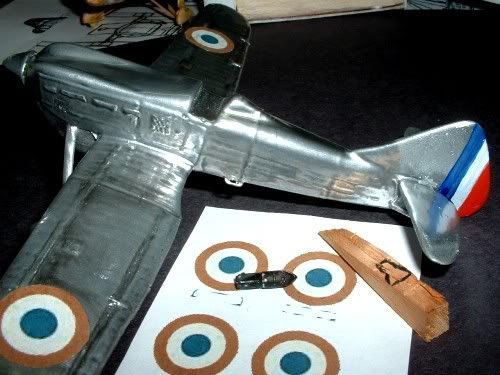 To end it all I added the propeller blades(Plastic card), Bombs (shaped wood), windscreen (Clear plastic with paper frame), bamboo antena and home made decals made on the PC and printed on inkjet decal paper…Oh since someone asked for a pilot I somewhat carved a piece of wood and painted it with oils…