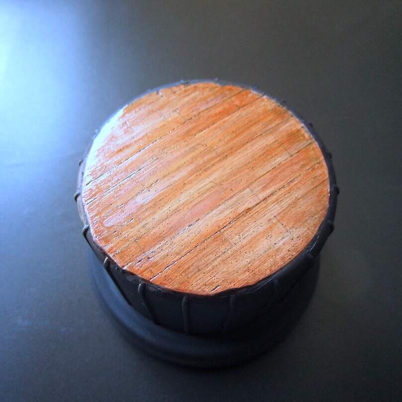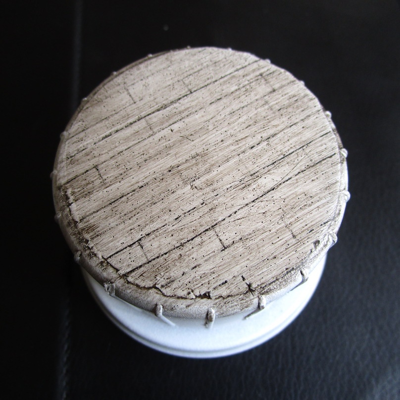 I made a wooden floor for the pedestal. I poured casting resin into the bottom and then a little bit on top. Scraped and scribed this resin on top to get a wood texture.