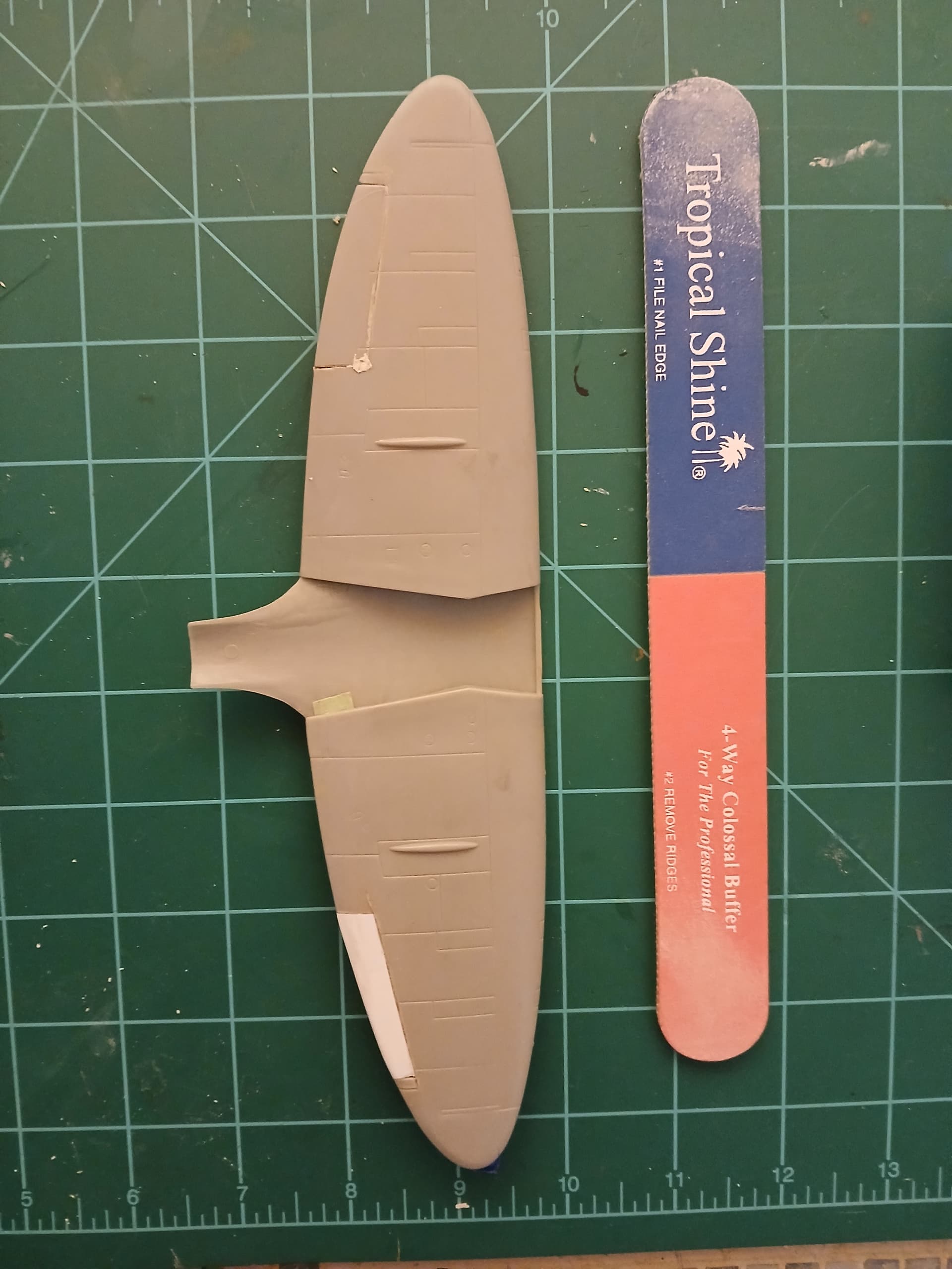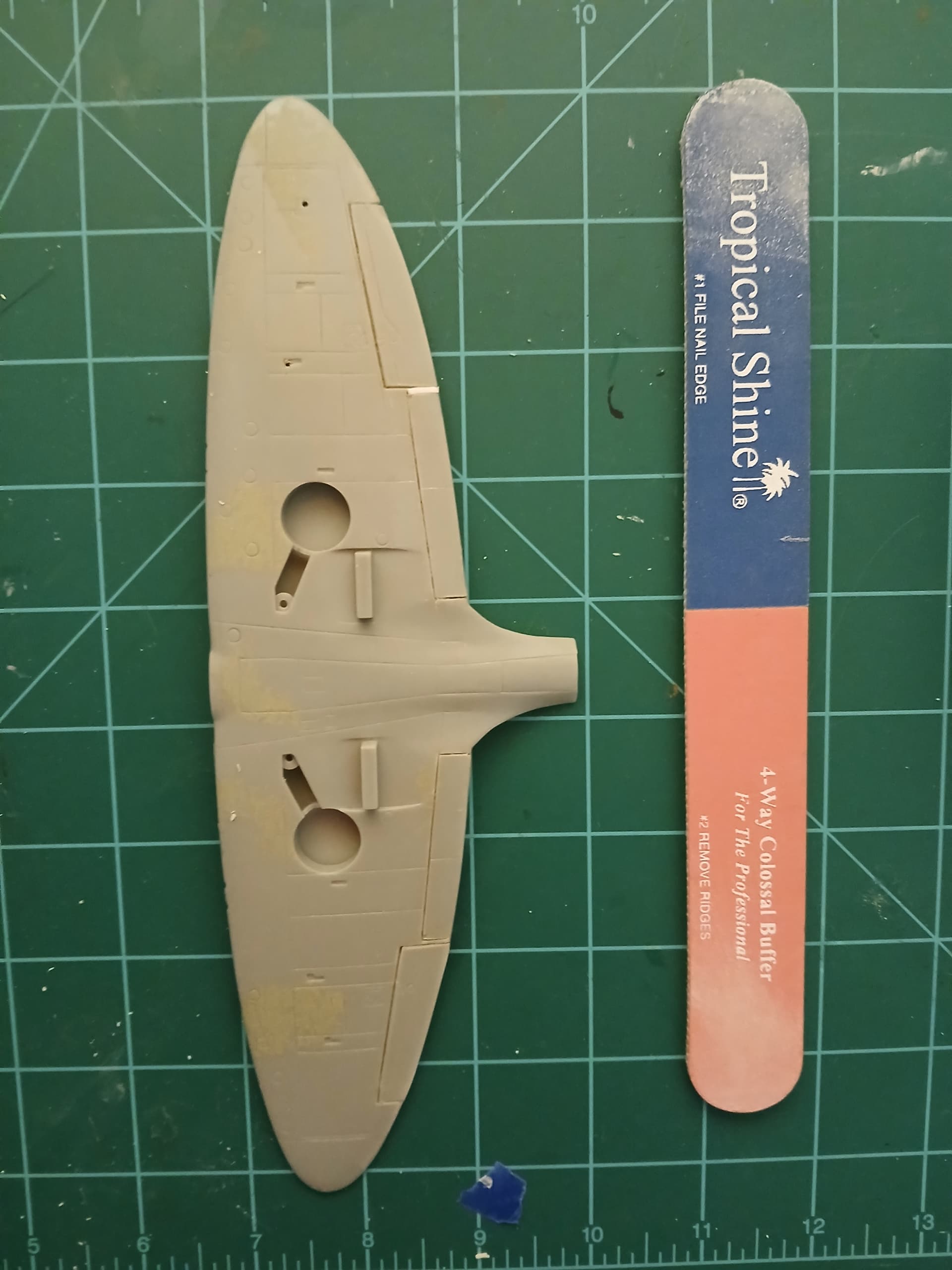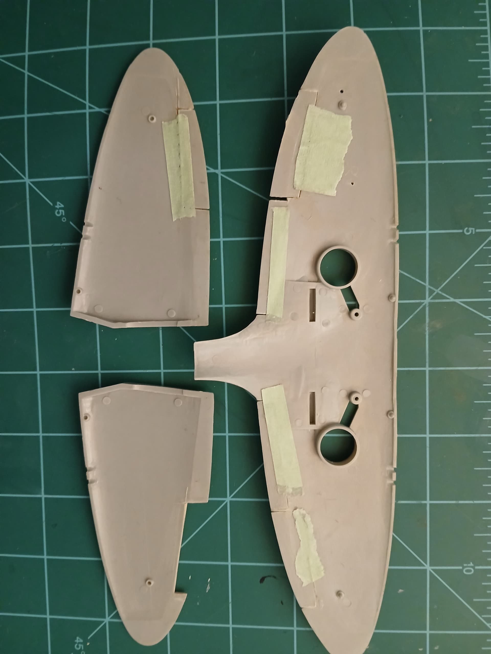 So, I have to refit the cut away pieces, scratchbuild a new upper right aileron, fill and rescribe as needed.