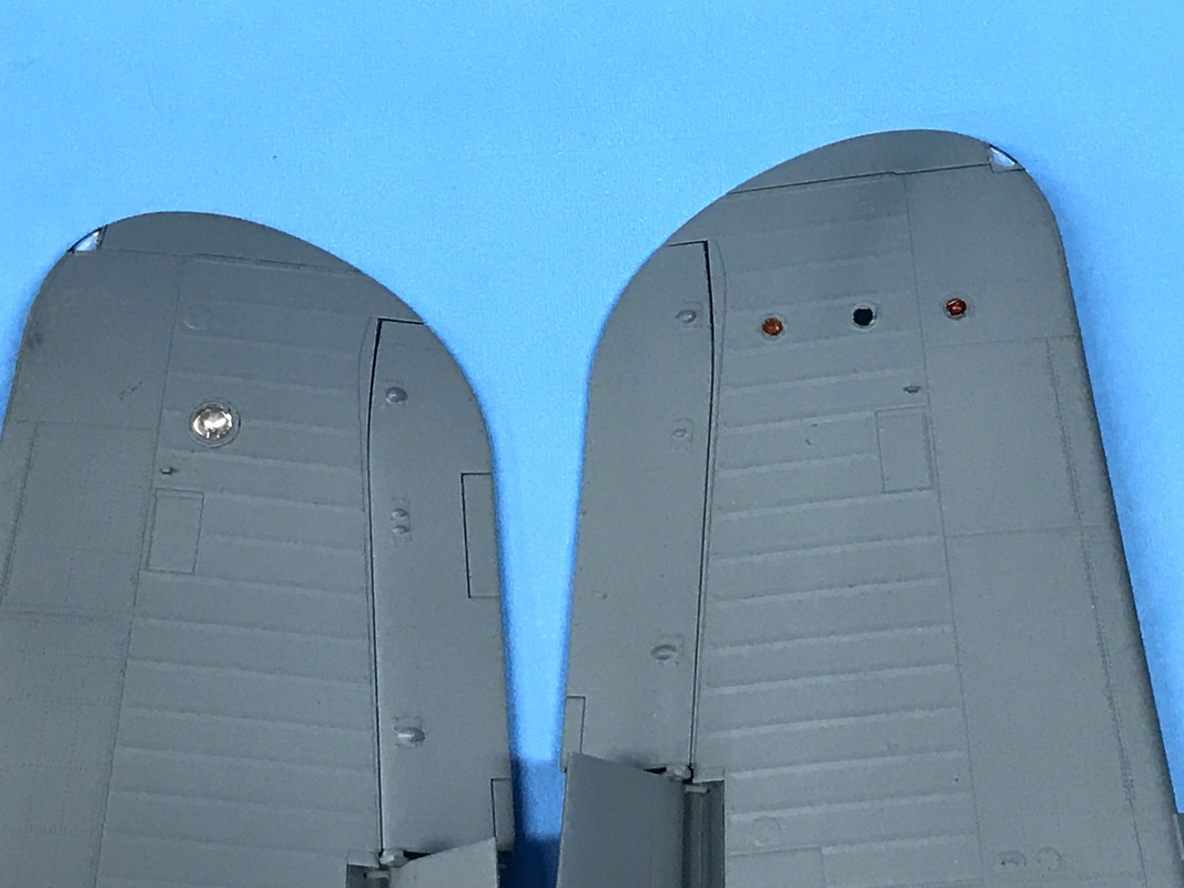 While this was drying I installed all the wing lights and coated their lenses with MicroScale Liquid Mask. The wing tip lights also got the Chrome Pen treatment and then the lenses were installed (like all the others) with Bondic.