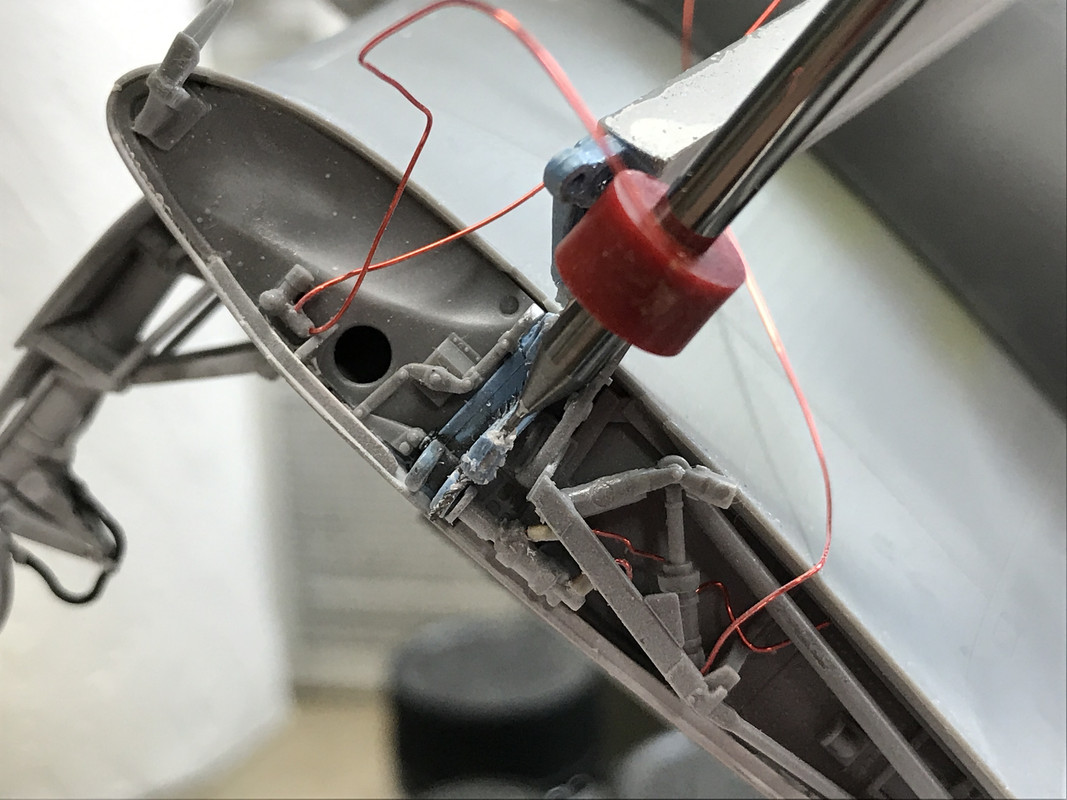 There are number of other electrical wires that pass through the wells, but I’m not sure I’m going to install them. That being said, the main gear actuating cylinder will have lines going to it.