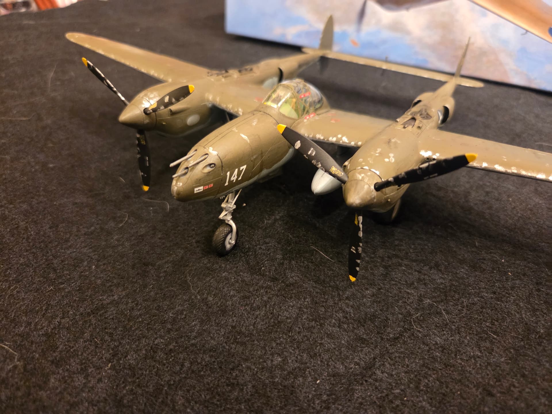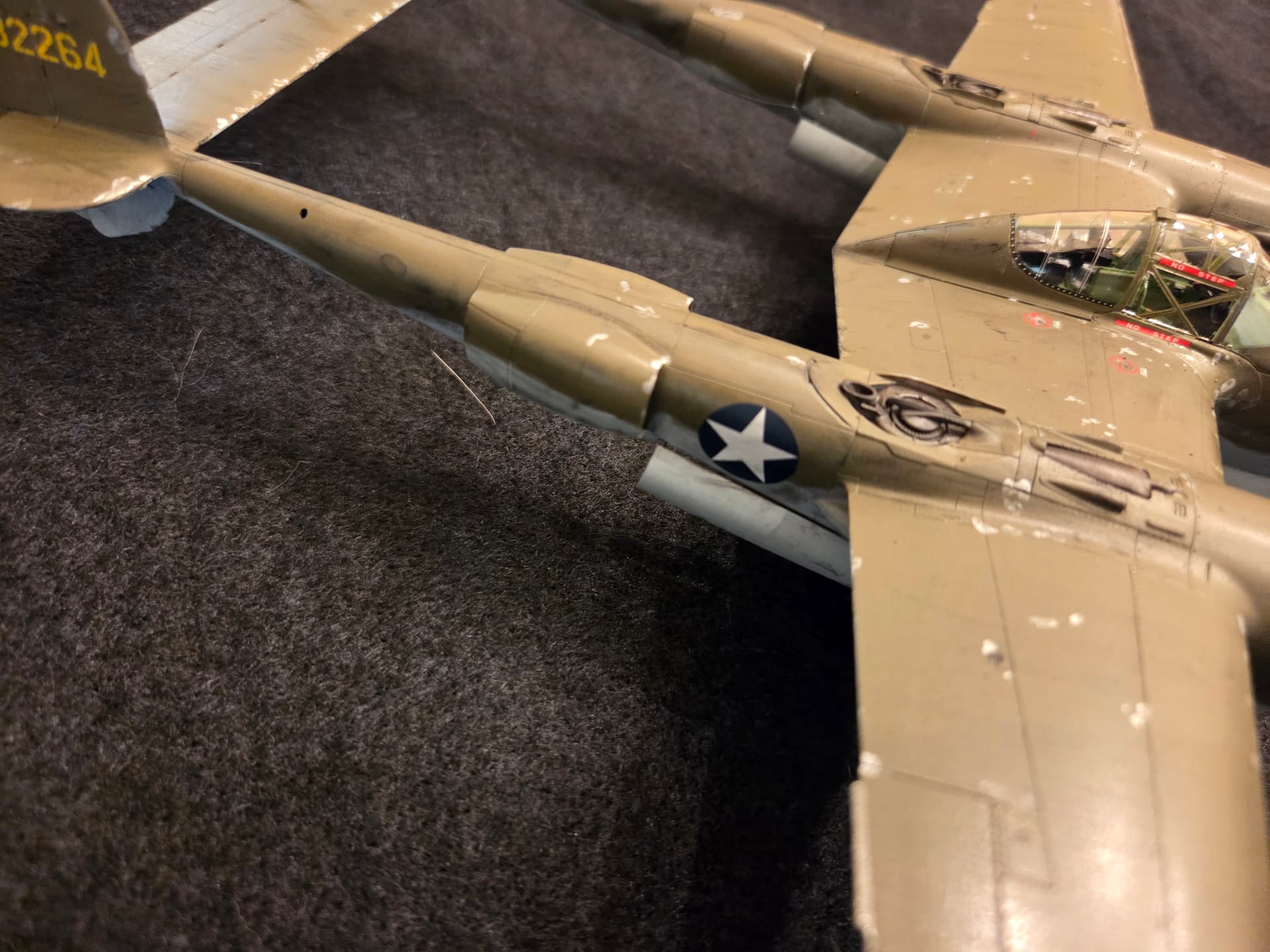 Fantastic looking “Fork-tailed Devil” larskeme! The P-38 has always been my favorite WWII plane. I really like them in the OD/grey scheme. I’ve got to get both of these Tamiya kits soon. Very nice of you to build it for your friend whose uncle flew the P-38.