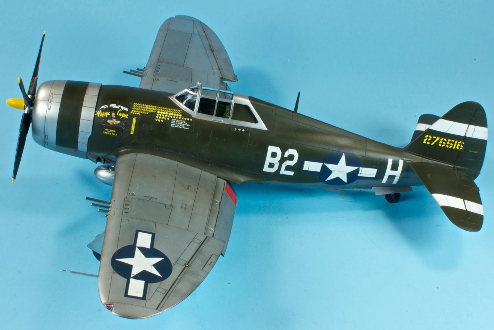 Finished up my first build of 2012 with a slog session last night - Tamiya’s stupendous P-47 Razorback wearing the livery of Col. Holt’s “Magic Carpet” of the 390th FS/366th FG/9th Air Force.