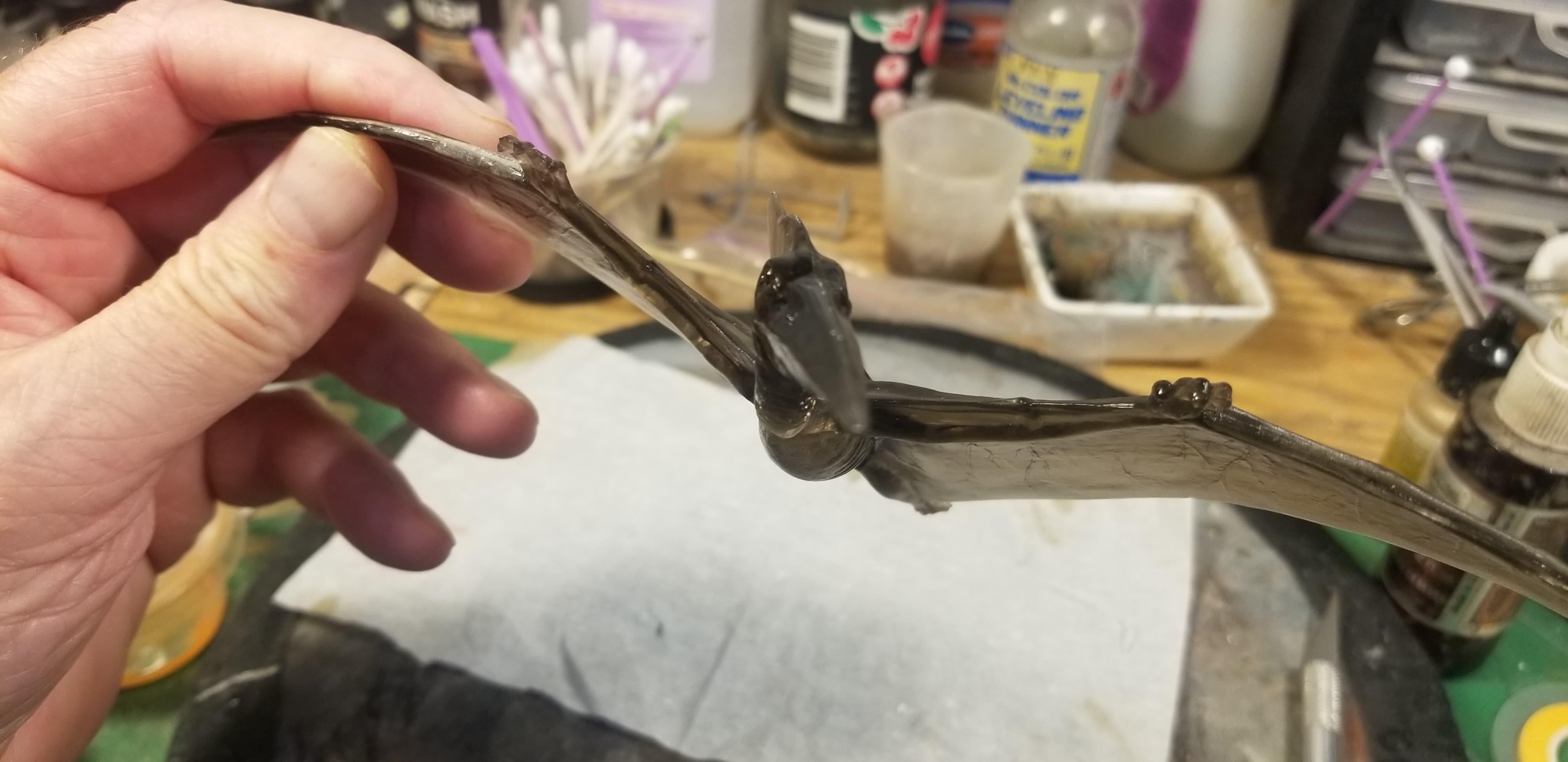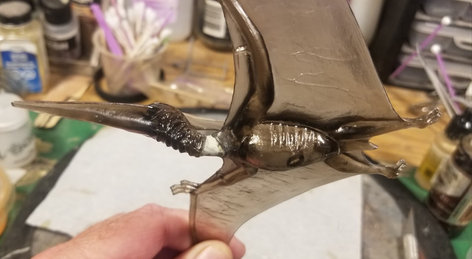 Interesting that it’s molded in a smoky clear. Maybe for the wing membrane, maybe just leftover styrene pellets.
